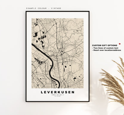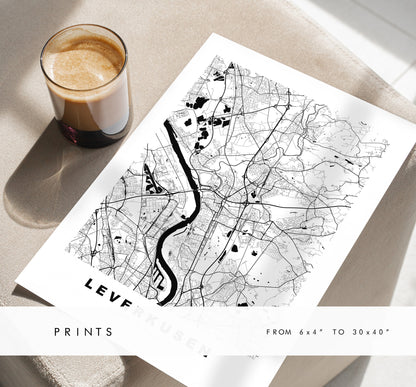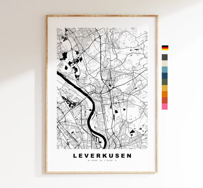 Leverkusen Map Print - City Map Poster - Map Wall Art - Germany City Maps - Leverkusen Print - Leverkusen Poster - Minimalist City Map