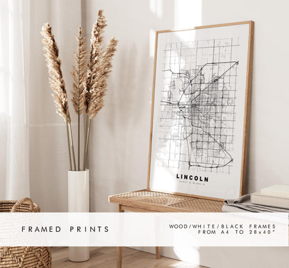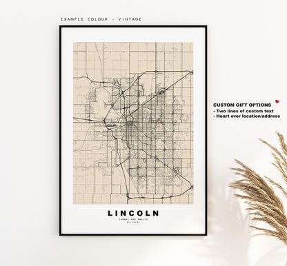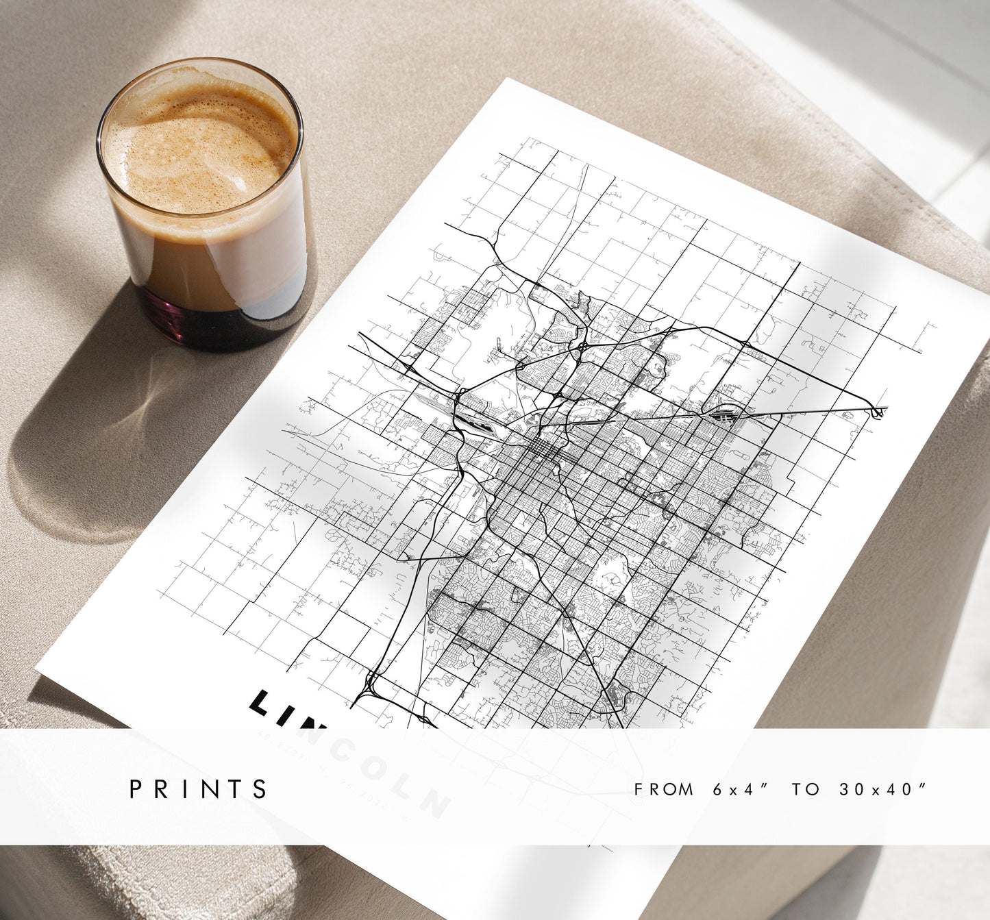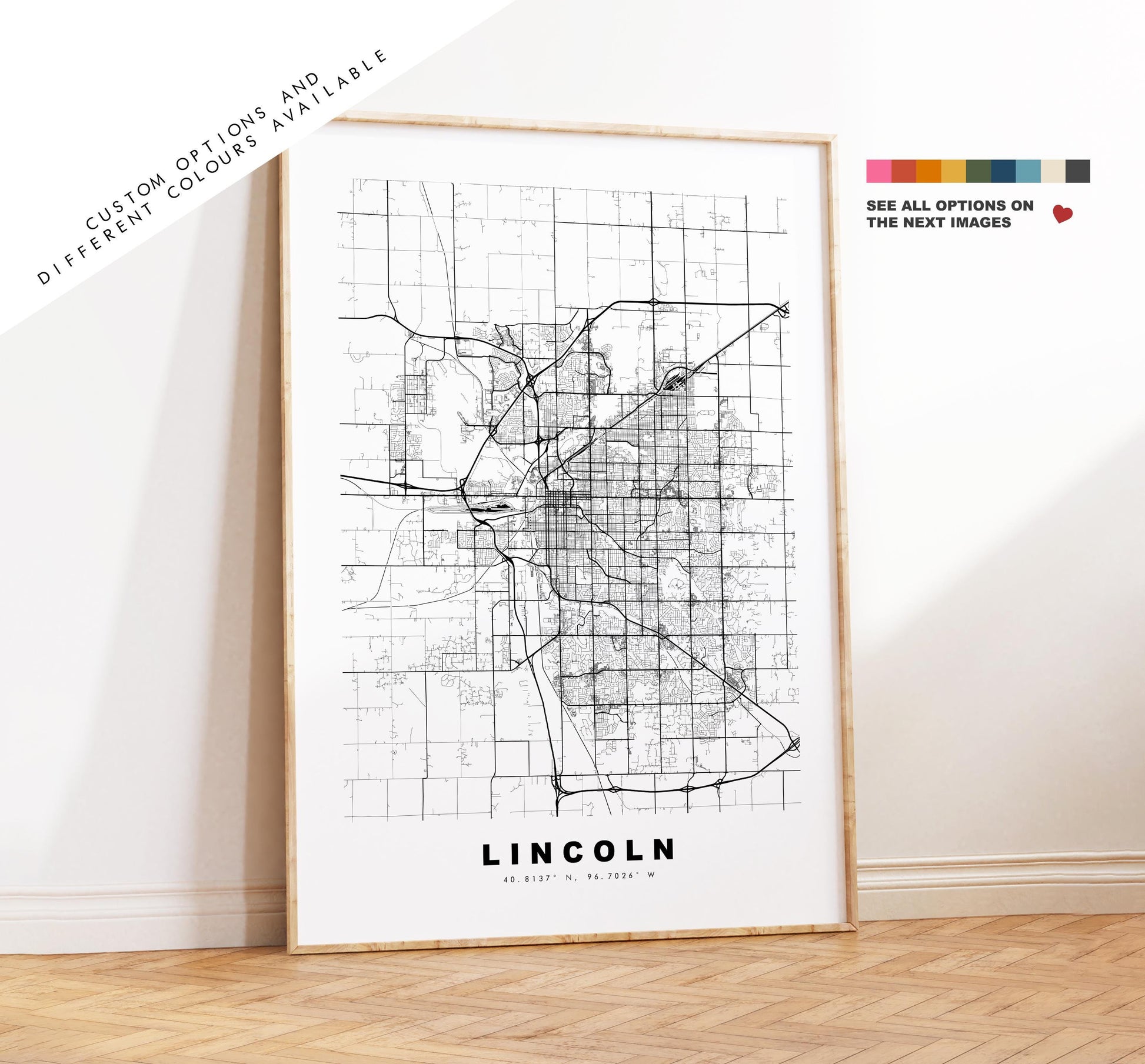 Lincoln Map Print (Nebraska) - City Map Poster - Map Art - USA City Maps - Lincoln Print - Lincoln Poster - Minimalist City Map - Nebraska