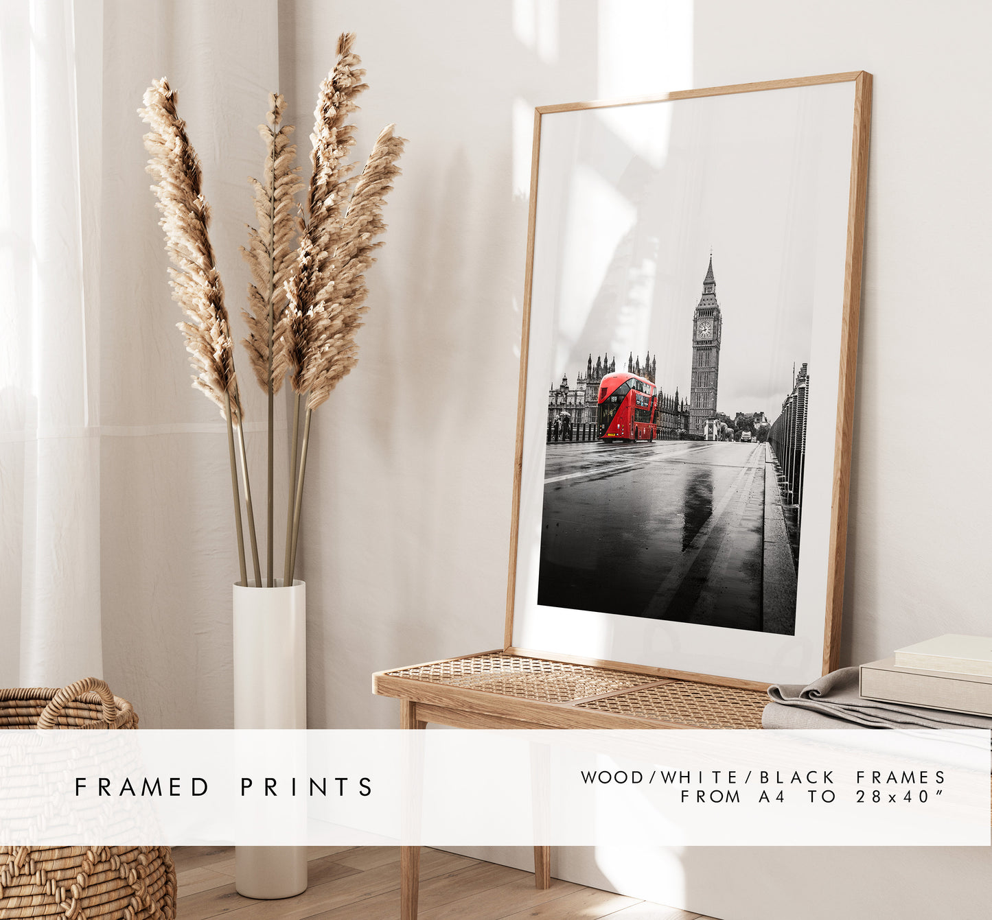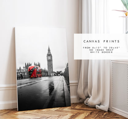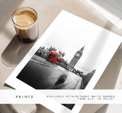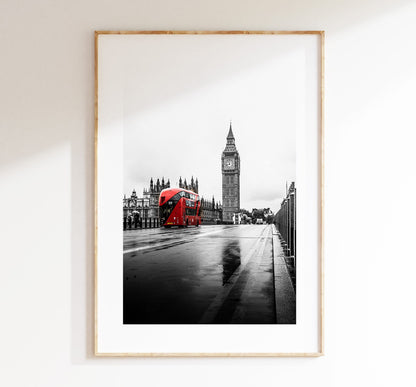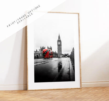 London Print - London Photography Print - Fine Art Photography - London Print - Poster - Wall Art - Westminster Bridge - London Bus - Red