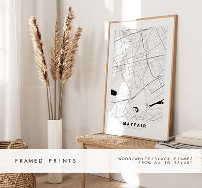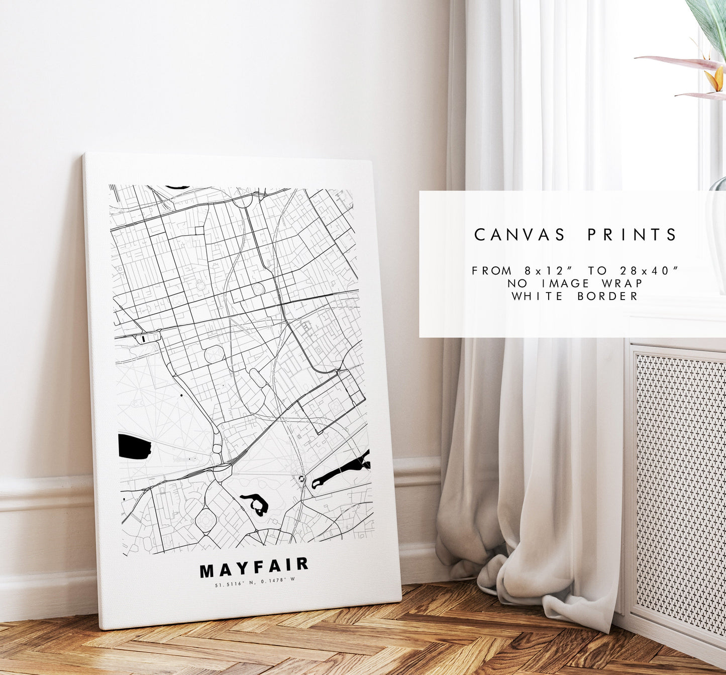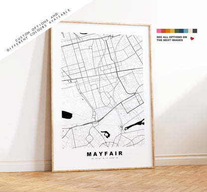 Mayfair Map Print - Minimalist City Map Poster - Map Art - London, UK - Mayfair Print - Mayfair Poster - Different Colours Available