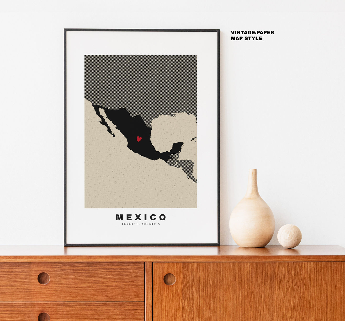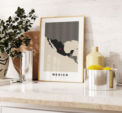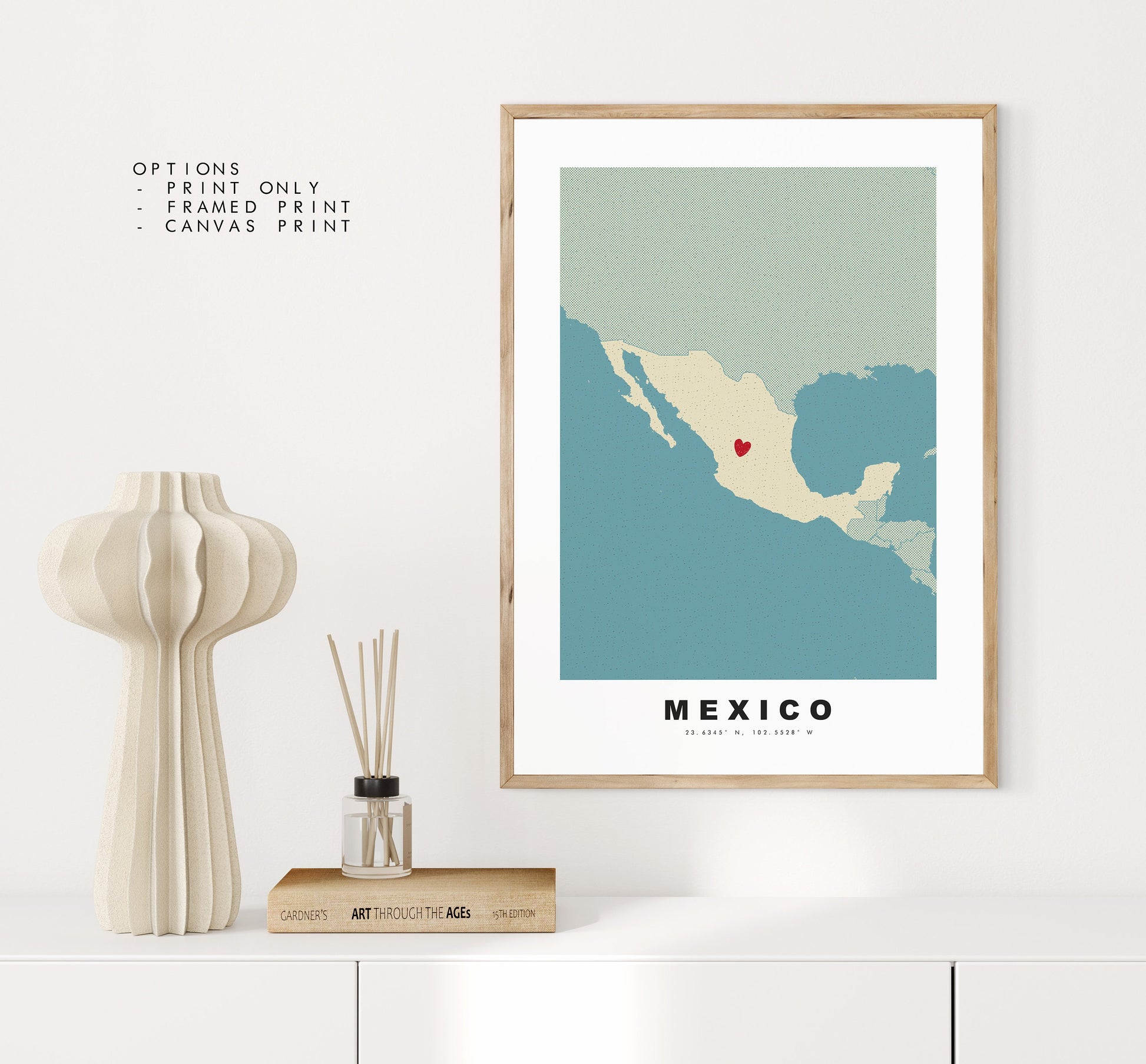 Mexico Map Print - Personalised Map Gift - Framed or Canvas Options Available - Custom Text Options - Personalised Gift - North America