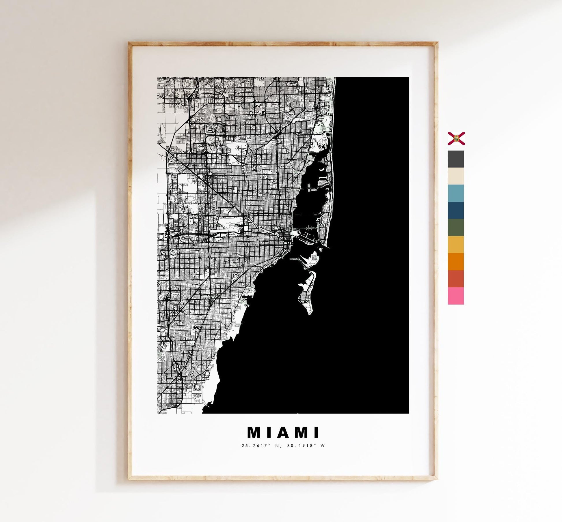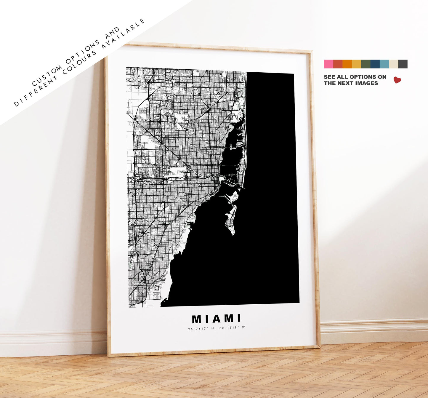 Miami Map Print - City Map Poster - Map Art - USA City Maps - Miami Print - Miami Poster - Minimalist City Map - Florida