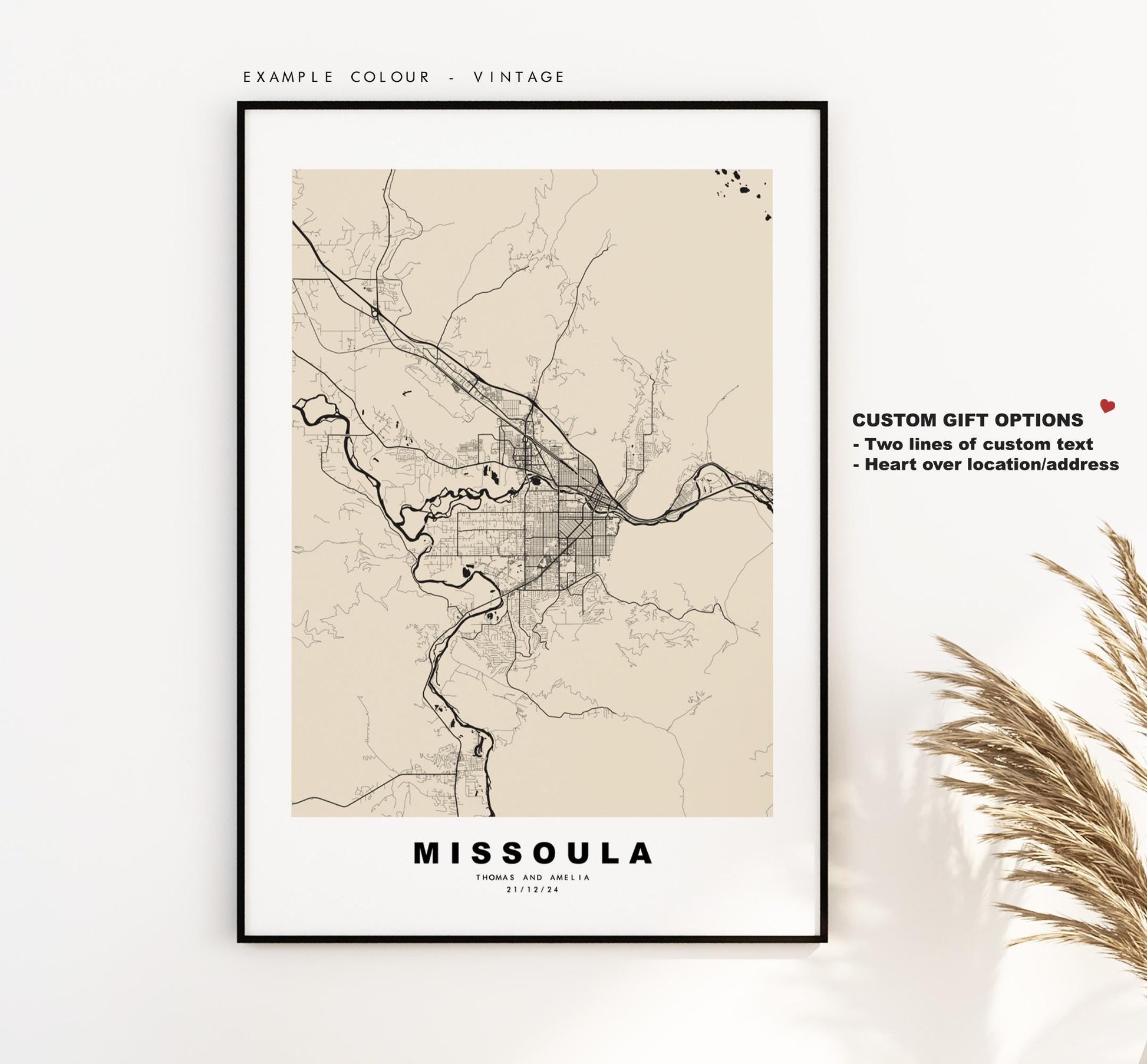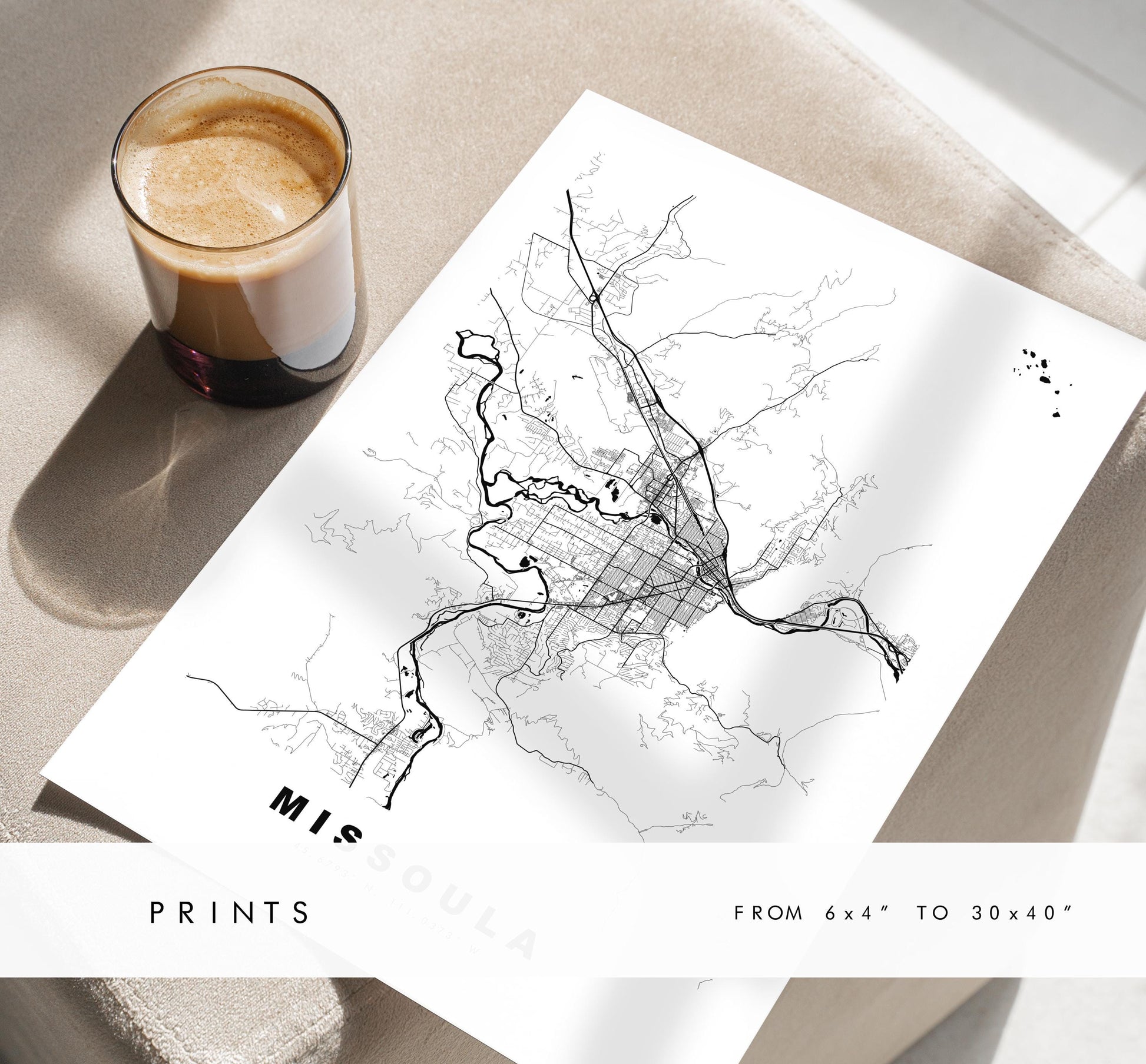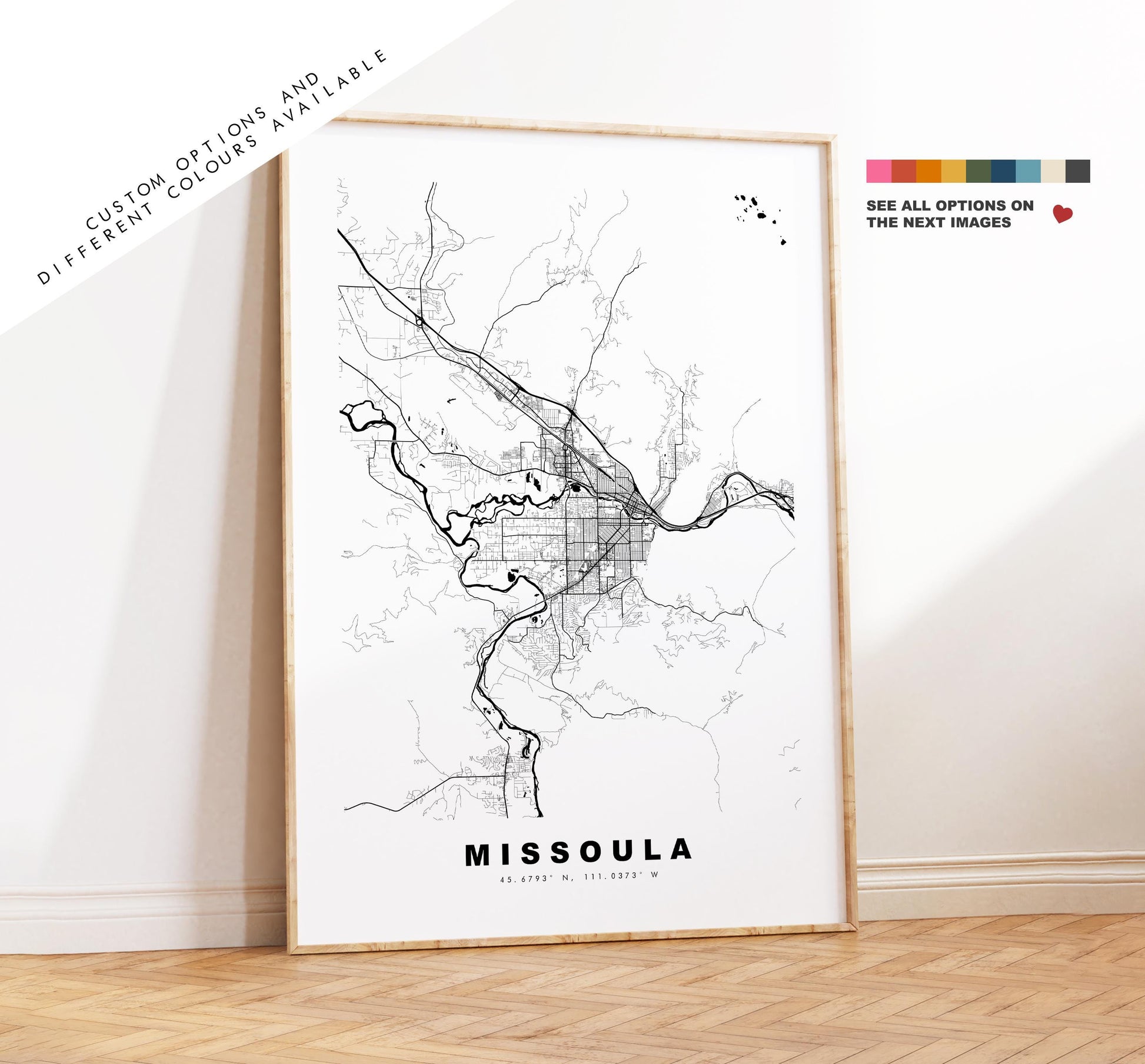 Missoula Map Print - City Map Poster - Map Art - USA City Maps - Missoula Print - Missoula Poster - Minimalist City Map - Montana