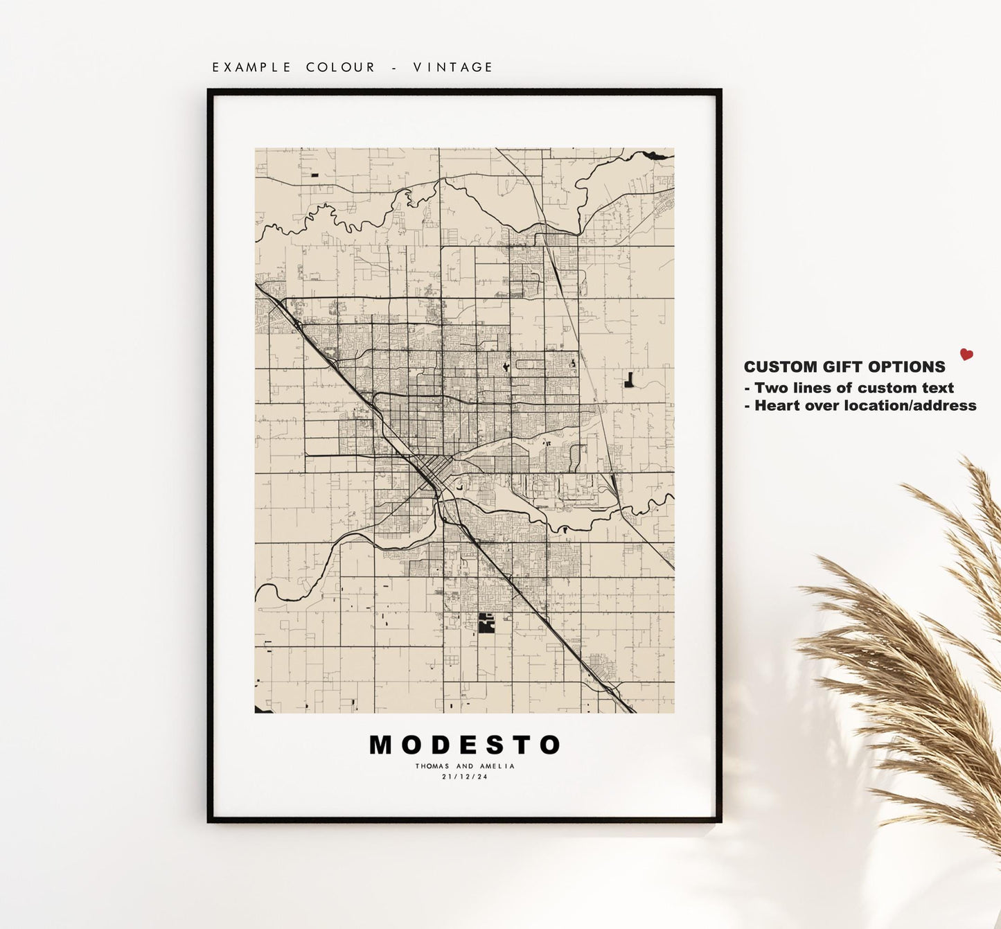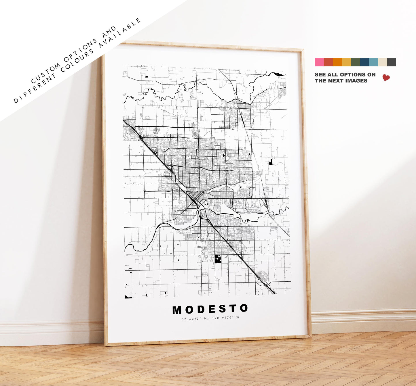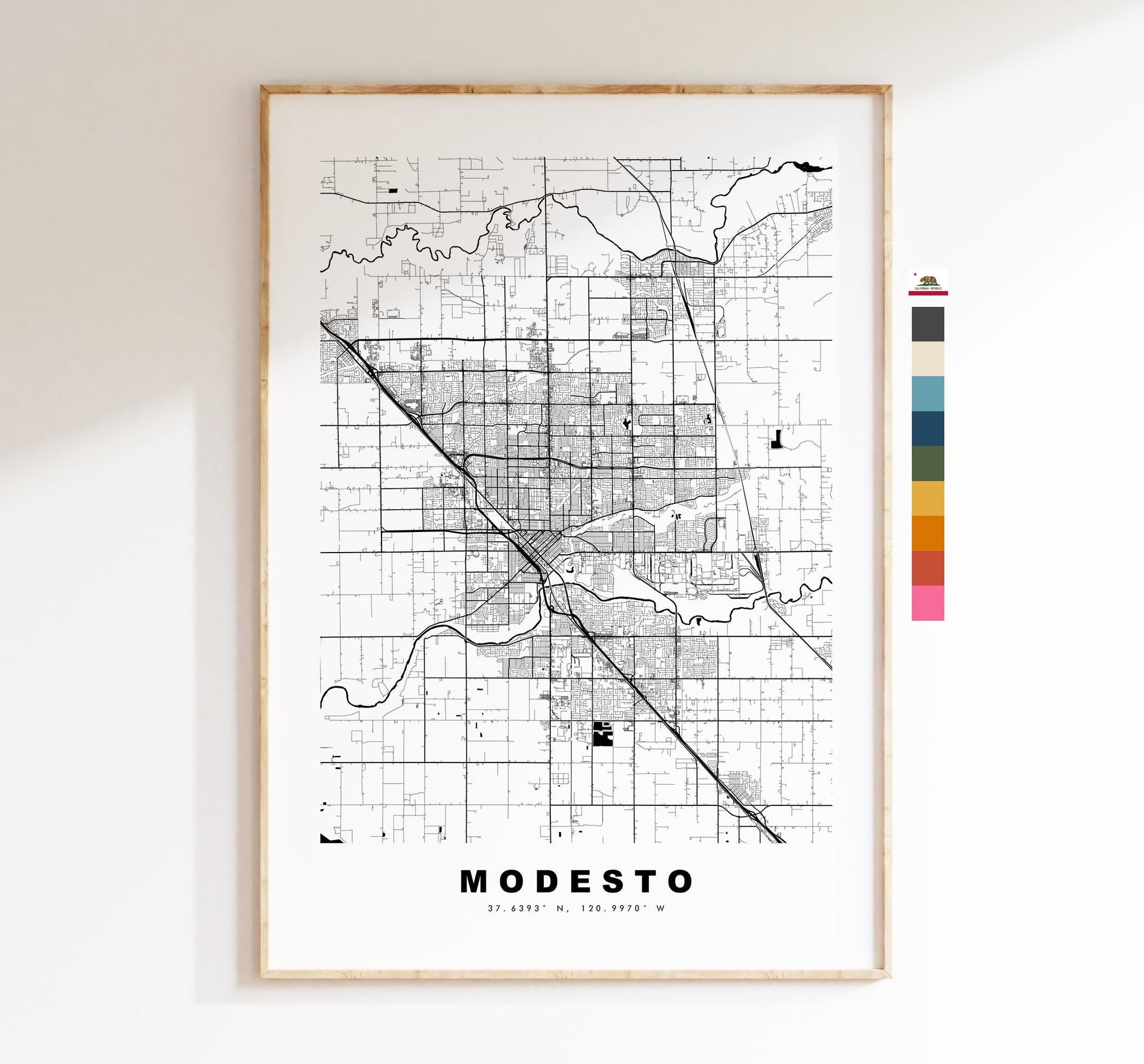Modesto Map Print - City Map Poster - Map Art - USA City Maps - Modesto Print - Modesto Poster - Minimalist City Map - California