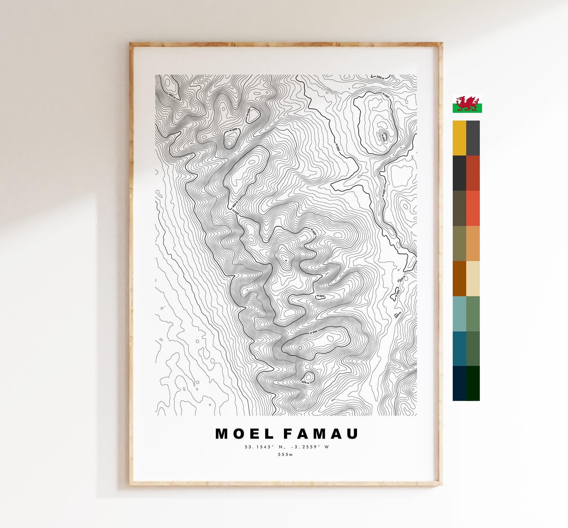 Moel Famau Print - Contour Map - Clwydian Hills - Wales - Topographic Map - Print - Poster - Wall Art - Moel Famau Map - Clwydian Range