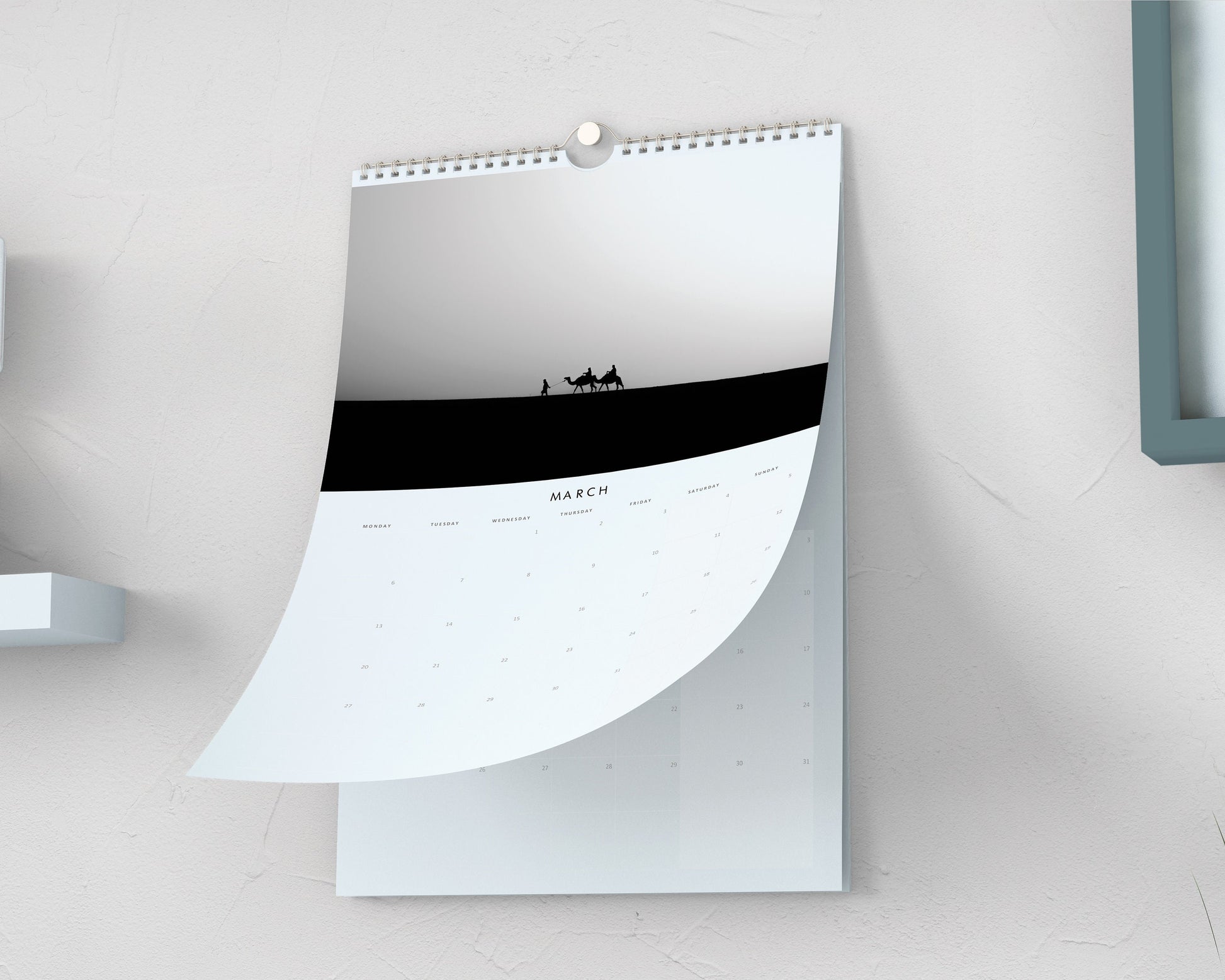 Each month features a wide image (see examples) above our modern, minimalist date template design, which has space for small notes under each date. All of our calendars are made to order and not mass produced.