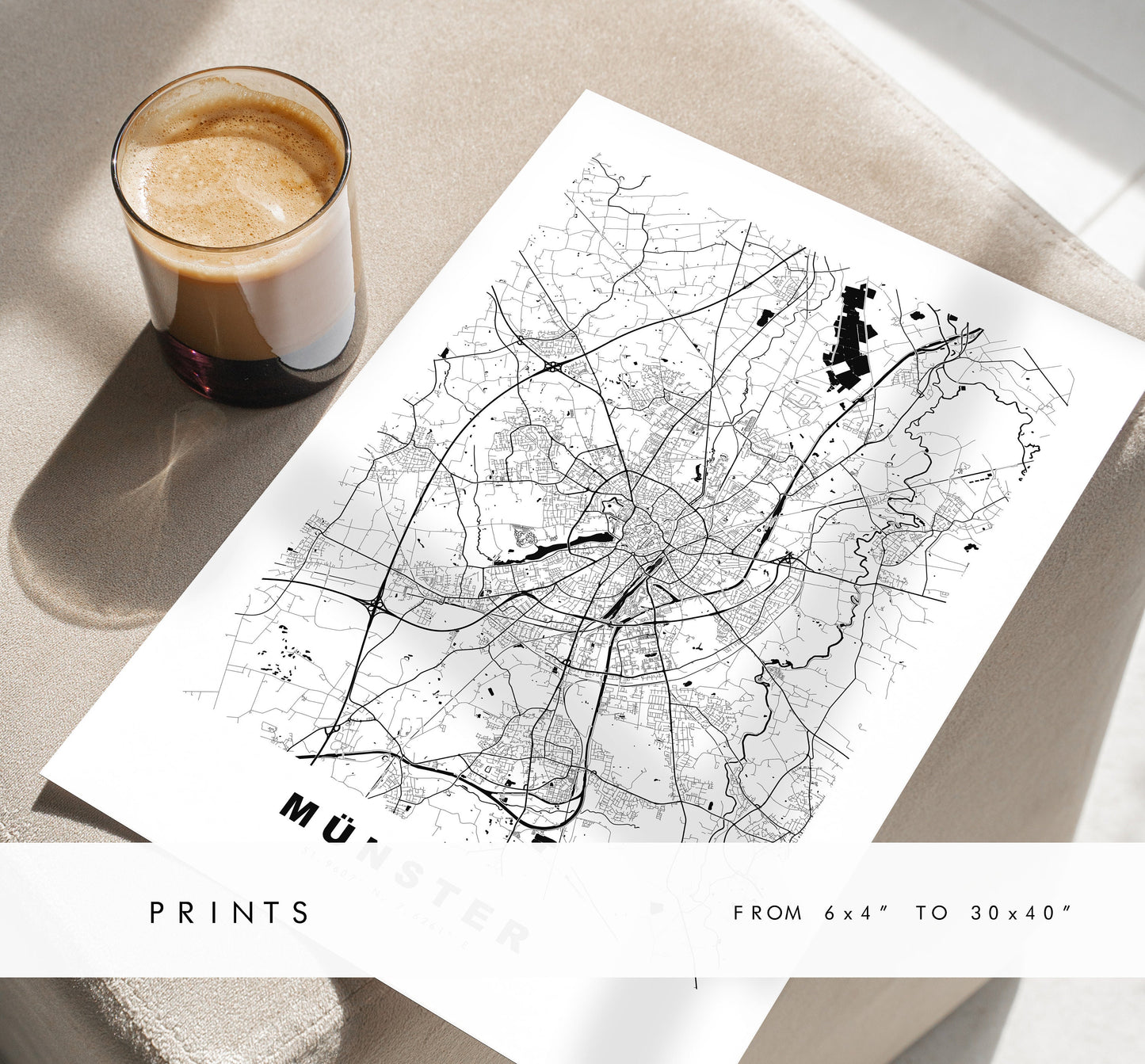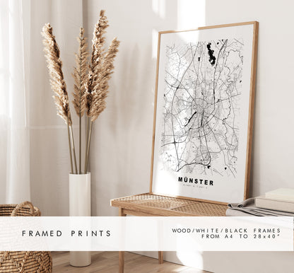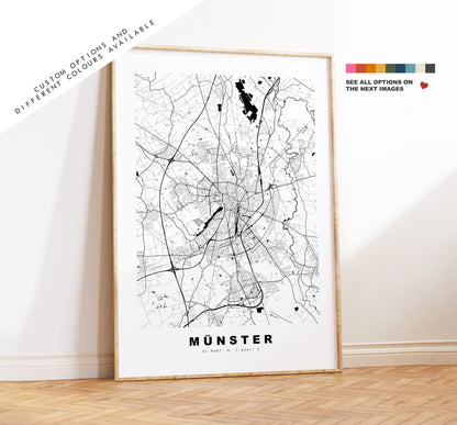 Munster Map Print - City Map Poster - Map Wall Art - Germany City Maps - Mรผnster Print - Mรผnster Poster - Minimalist City Map - Germany