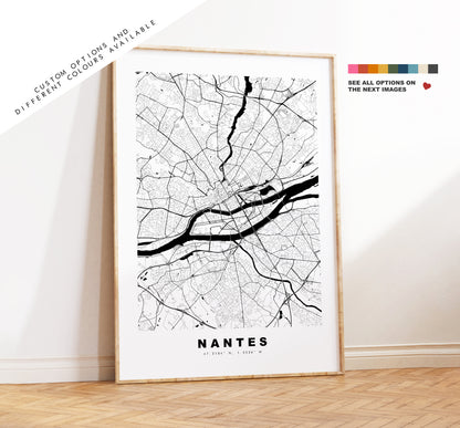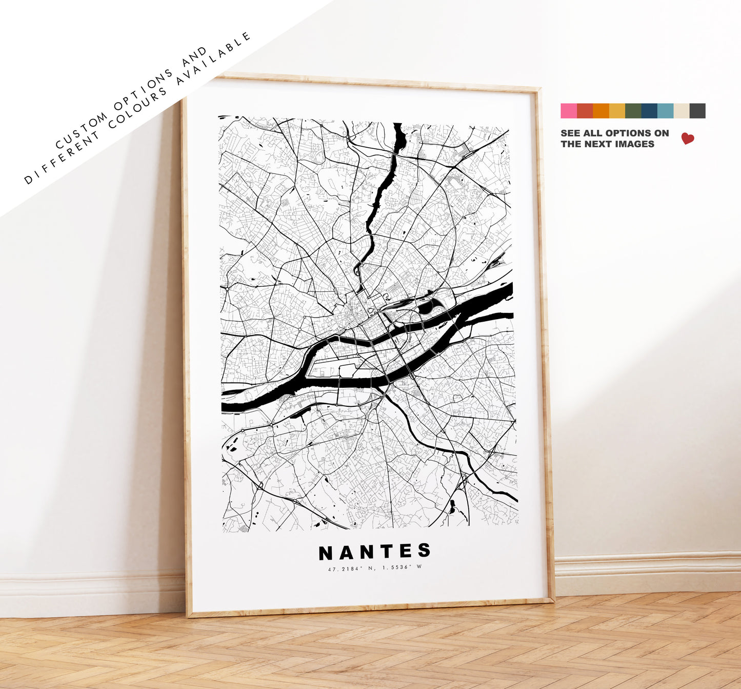 Nantes Map Print - City Map Poster - Map Wall Art - France City Maps - Nantes Print - Nantes Poster - Minimalist City Map - France