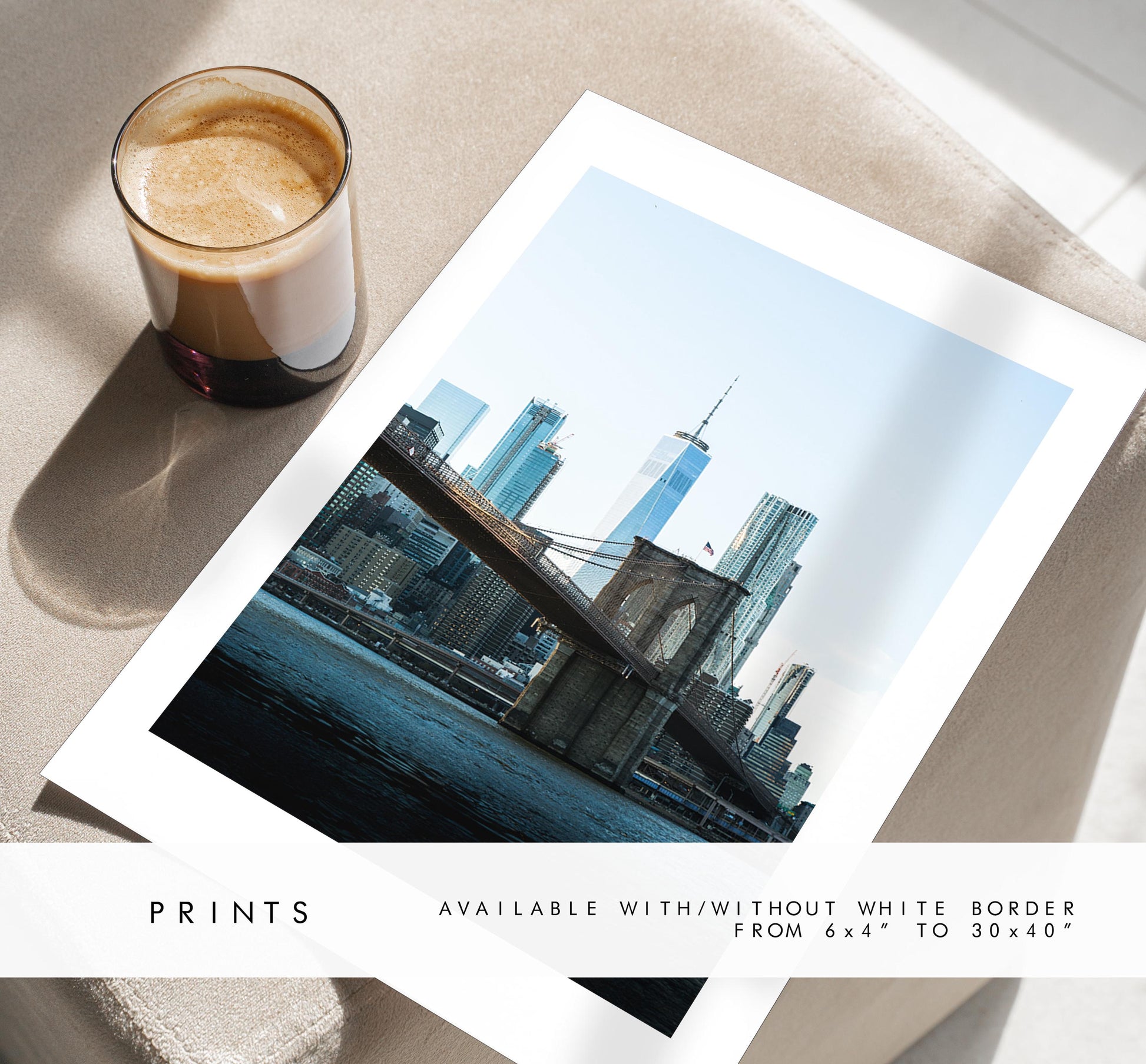 New York Skyline Print - New York Skyline - Manhattan Skyline - New York Print - Poster - Artwork - World Trade Centre - Brooklyn Bridge