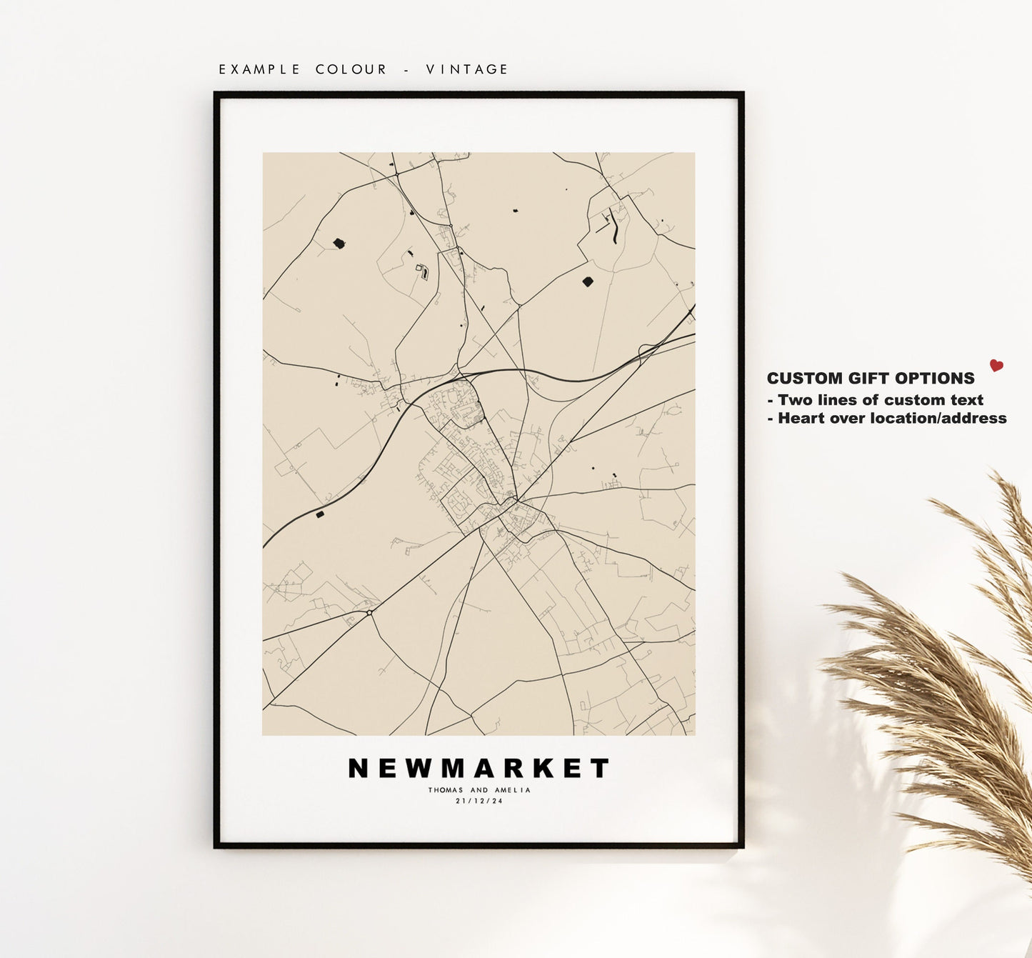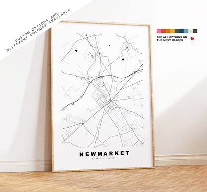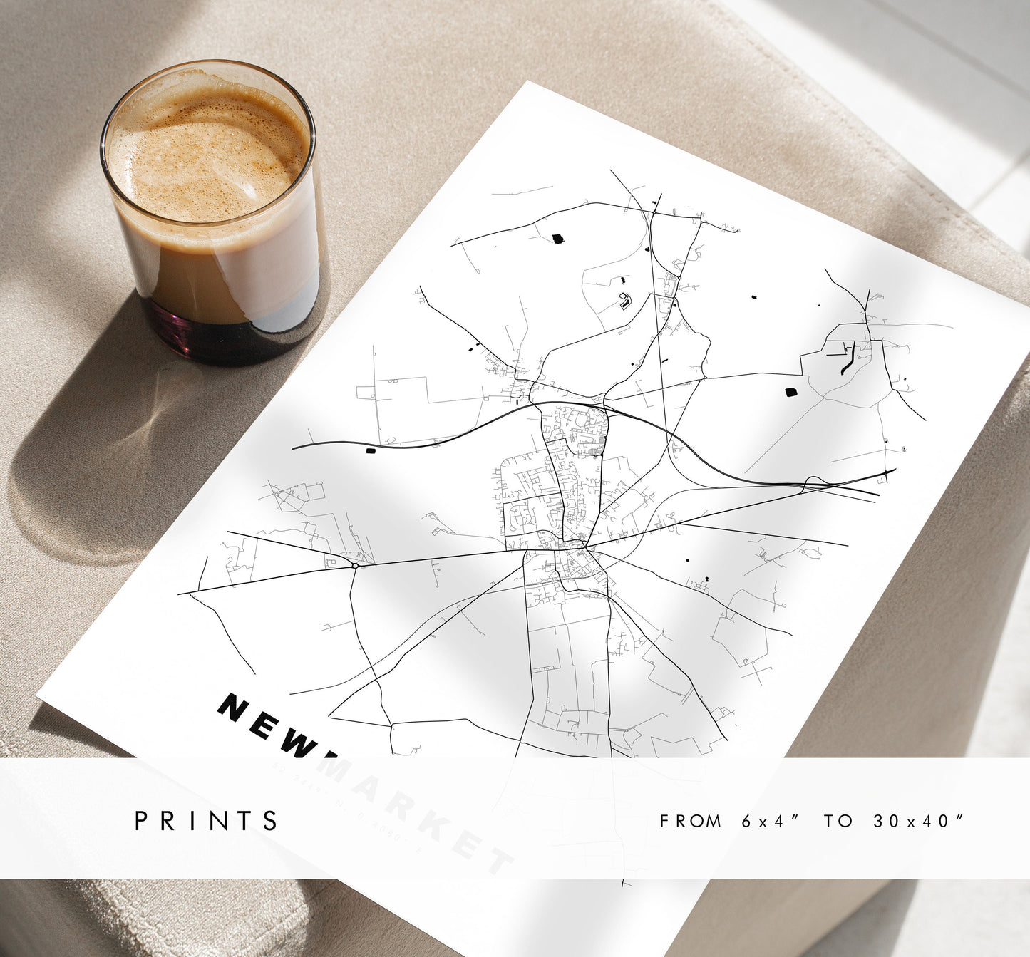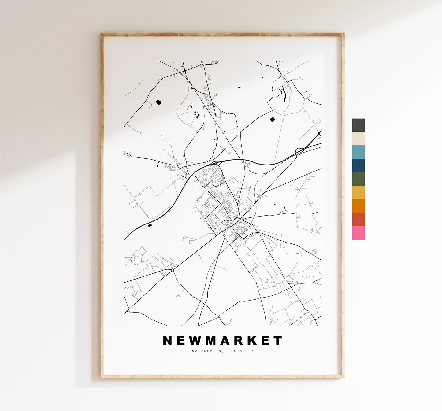 Newmarket Map Print - Minimalist City Map Poster - Map Wall Art - UK - Newmarket Print - Newmarket Poster - Different Colours Available