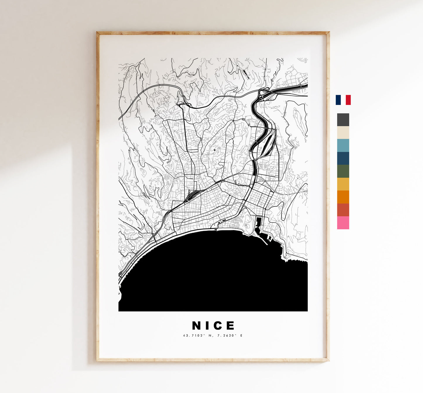 Nice Map Print - City Map Poster - Map Wall Art - France City Maps - Nice Print - Nice Poster - Minimalist City Map - France