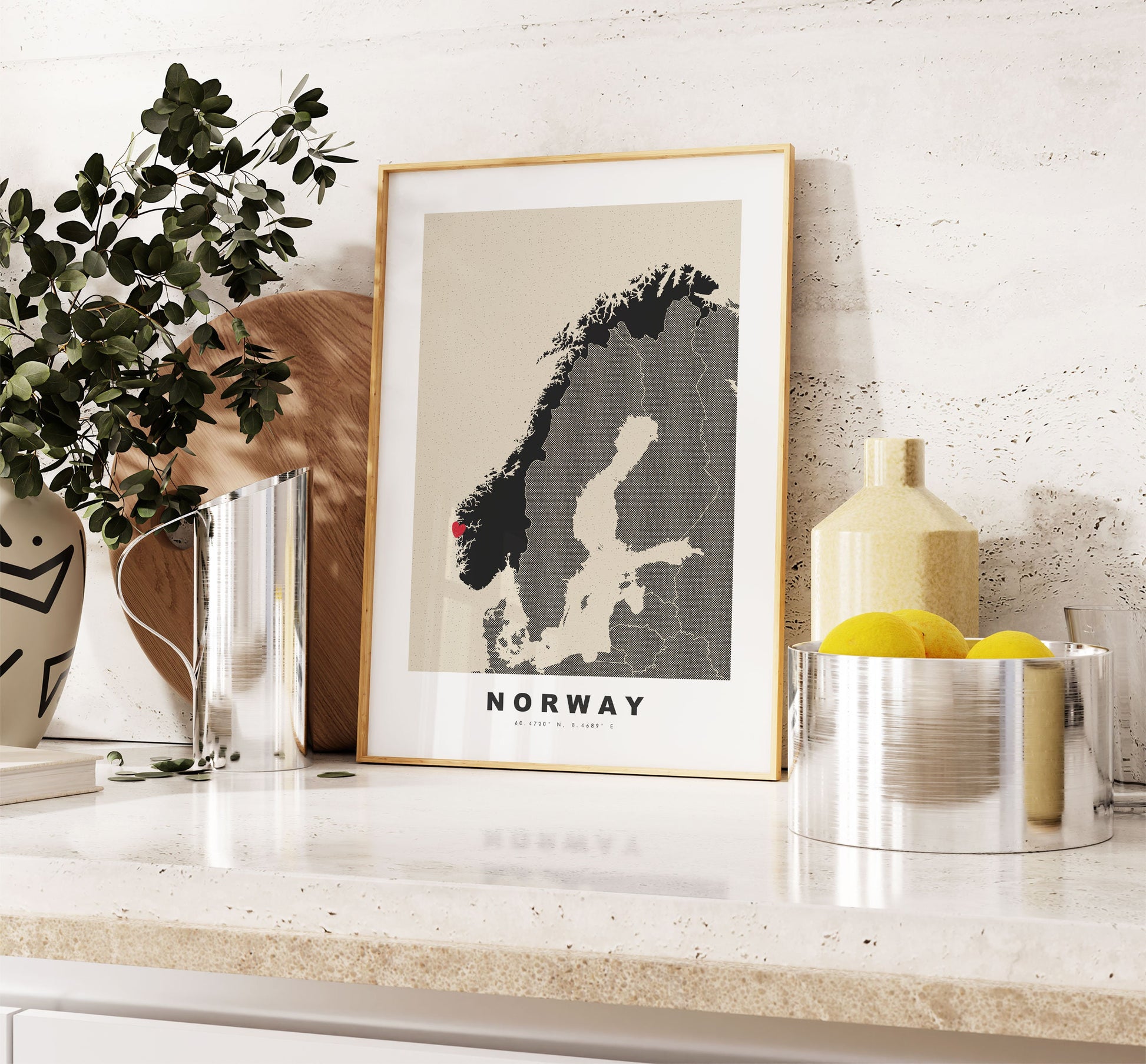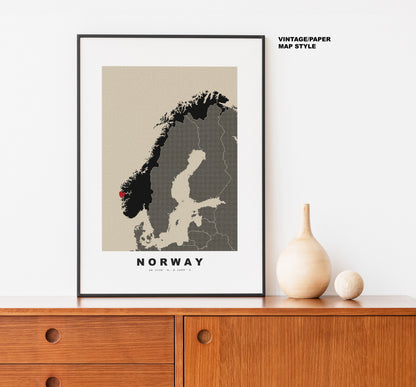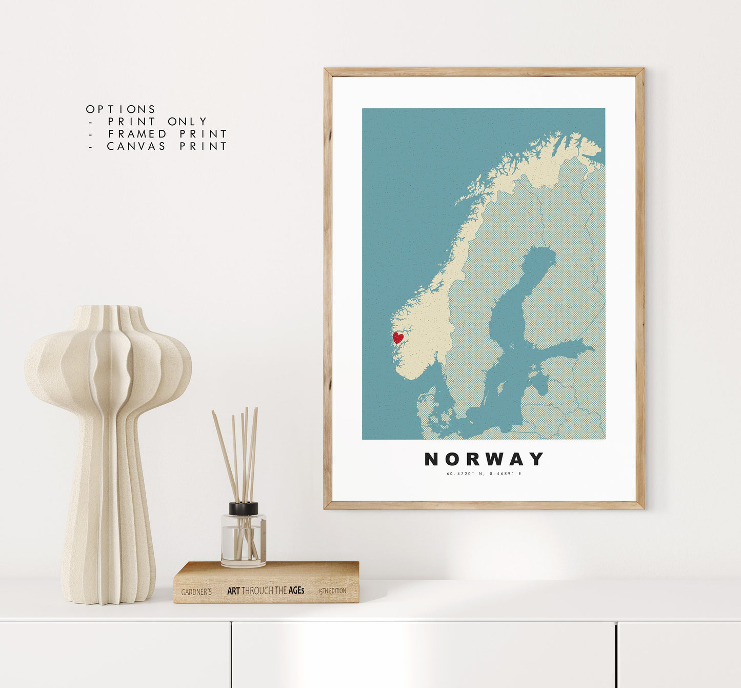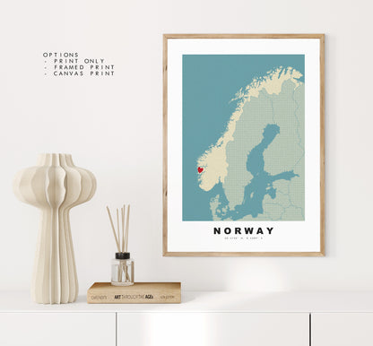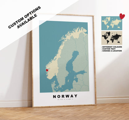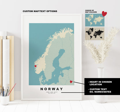 Norway Map Print - Personalised Map Gift - Framed or Canvas Options Available - Custom Text Options - Personalised Gift - Europe