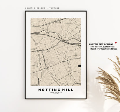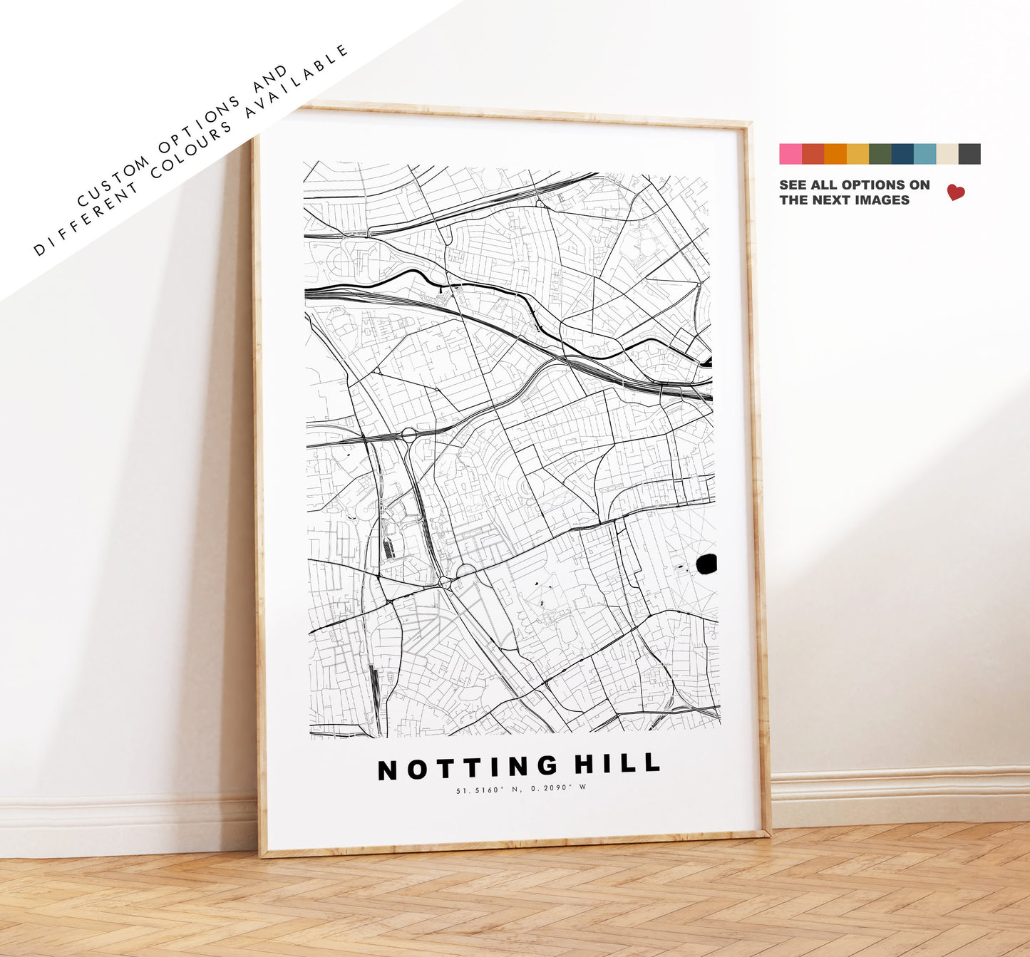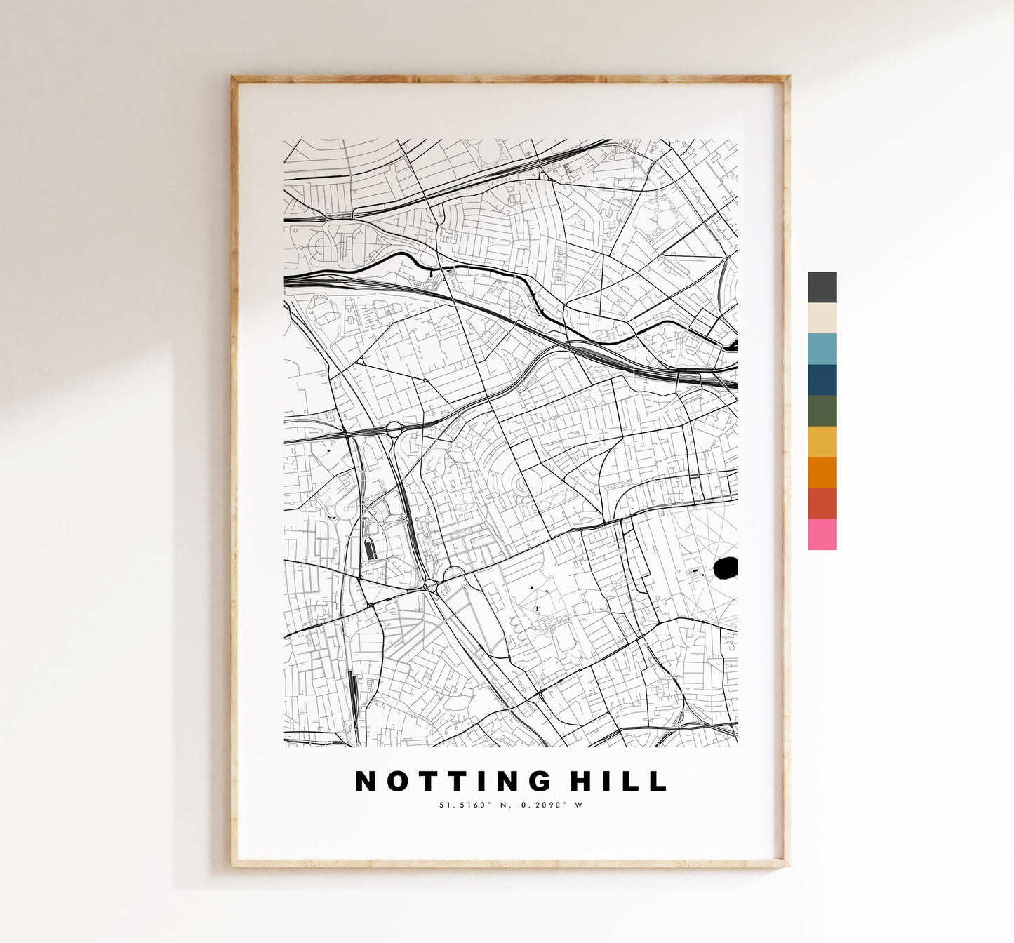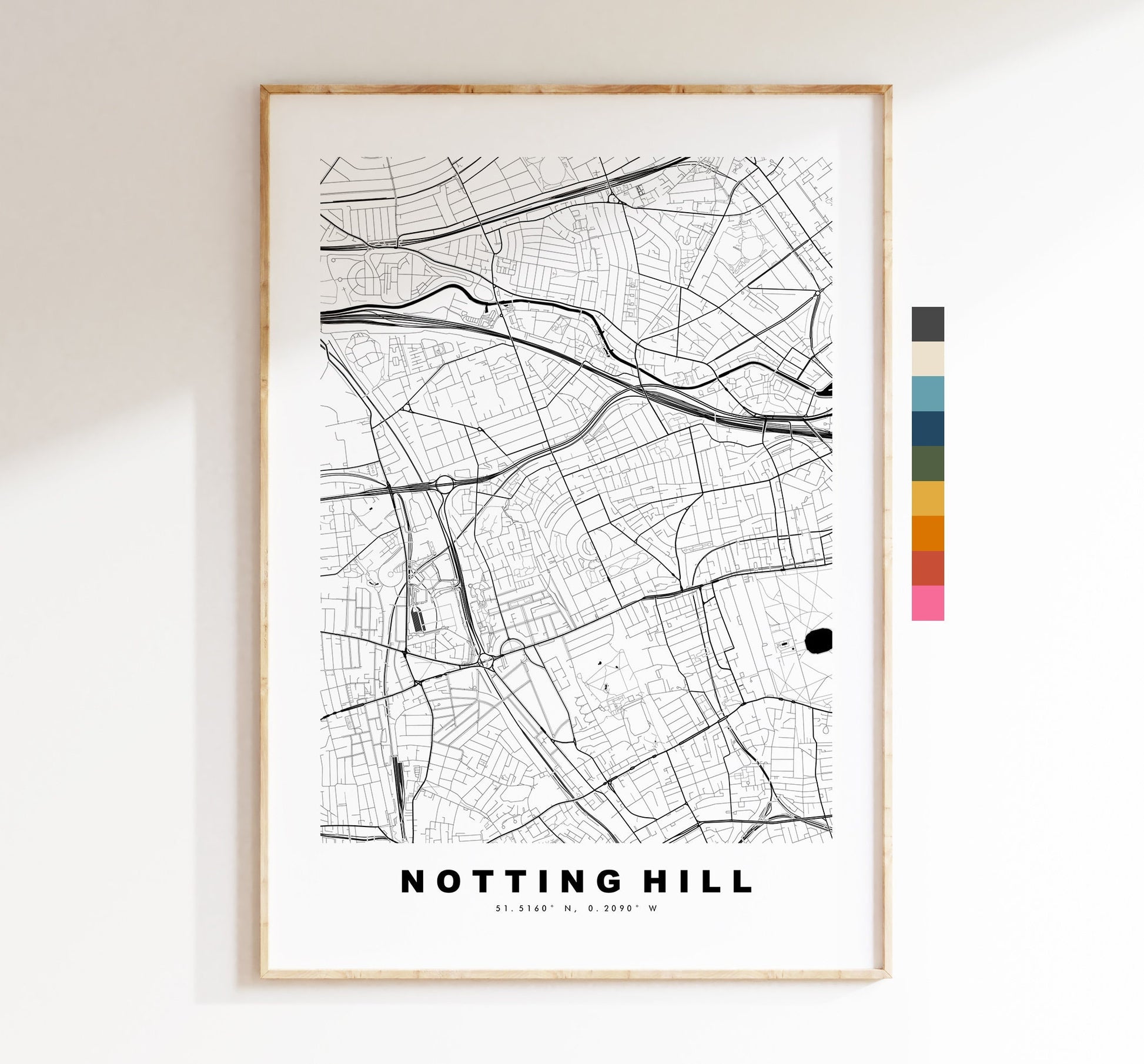 Notting Hill Map Print - Minimalist City Map Poster - Map Art - London, UK - Notting Hill Print - Poster - Different Colours Available