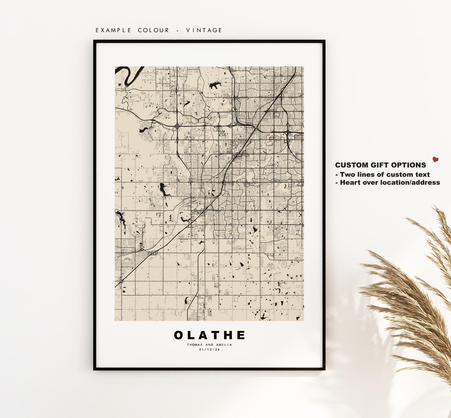 You can personalise this print by adding up to two lines of custom text beneath the city title, or by adding a heart over a location or address.