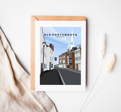 Old Portsmouth Greeting Card - All of our cards are printed on 300gsm white recycled card stock and supplied with a recycled kraft envelope. Available blank inside or with an included message if you would like to send the card straight to the recipient!