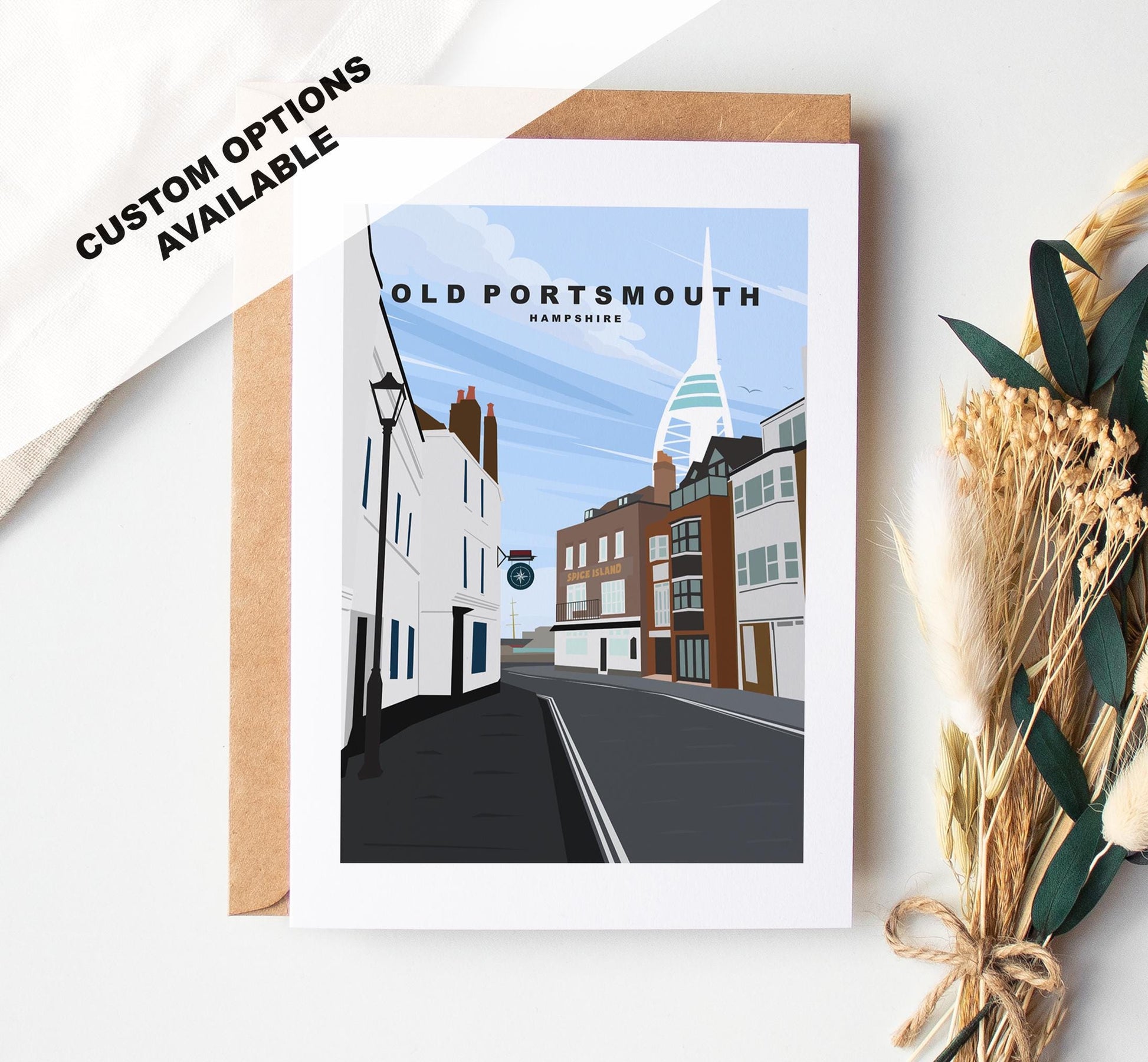 Old Portsmouth Greeting Card - Portsmouth and Southsea Cards (Travel Designs) - Blank Inside or Include Message - Envelope Included