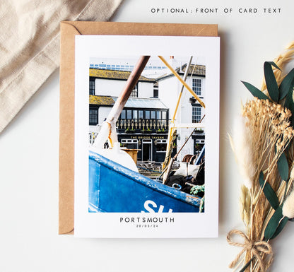 Old Portsmouth Greeting Card - featuring original photography by us. All of our cards are printed on 300gsm white recycled card stock and supplied with a recycled brown kraft envelope. Available blank inside or with an included message if you would like to send the card straight to the recipient!