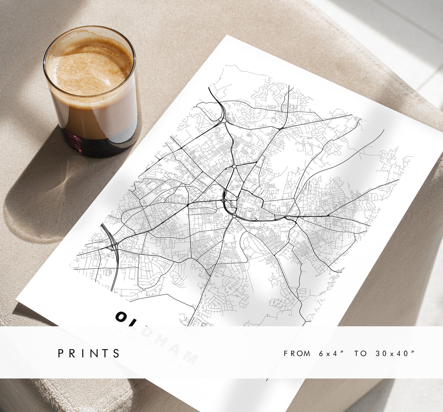 Oldham Map Print - Minimalist City Map Poster - Map Wall Art - UK - Oldham Print - Oldham Poster - Different Colours Available
