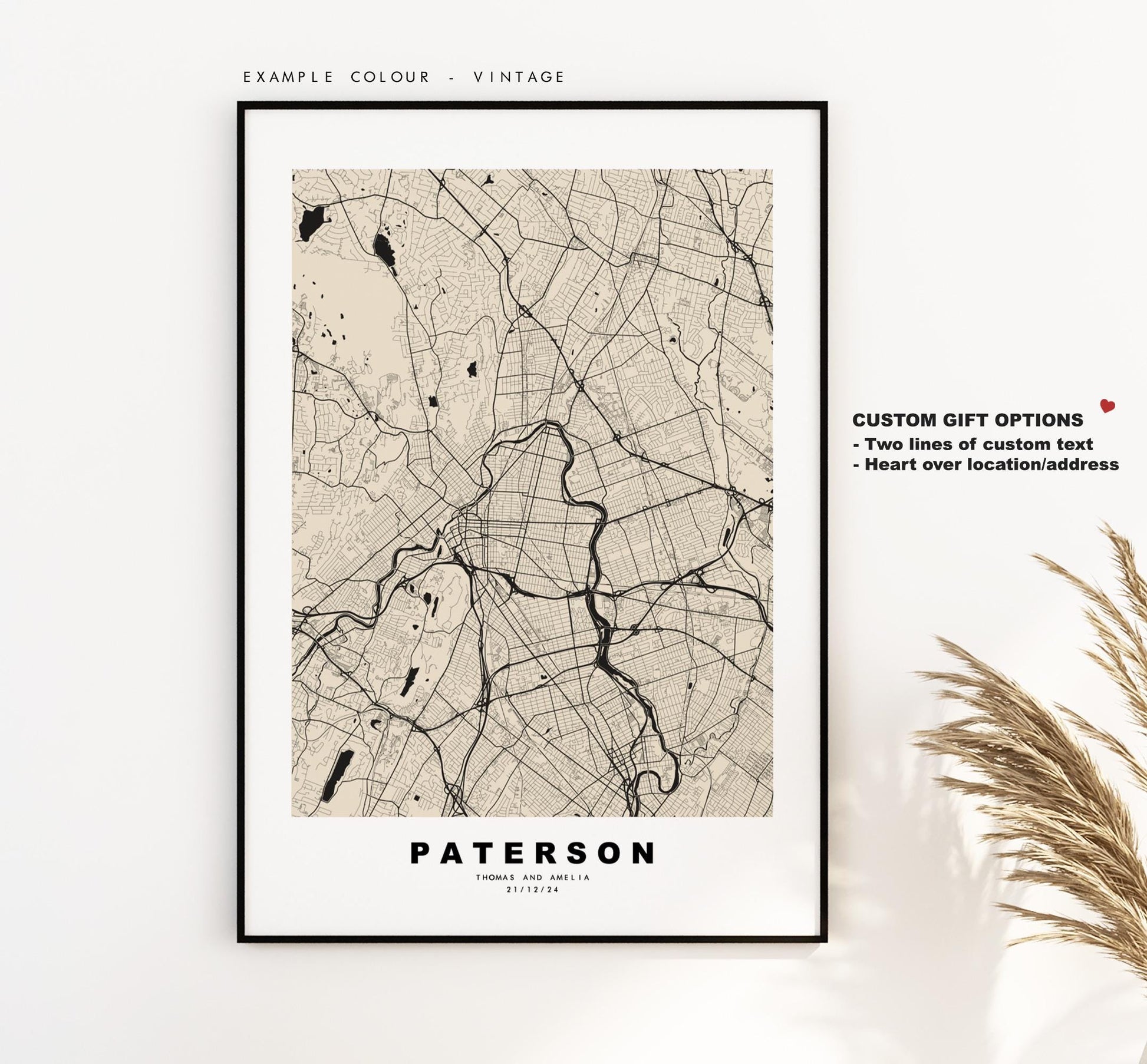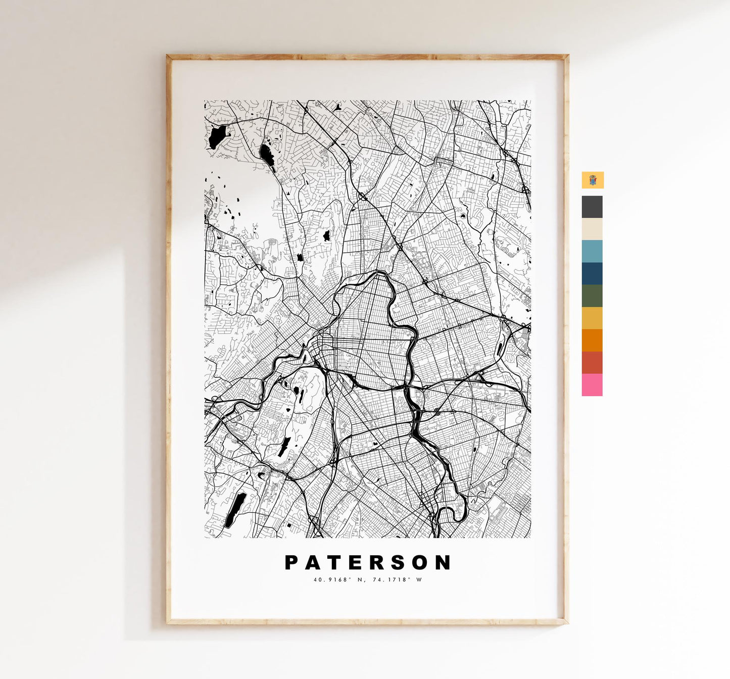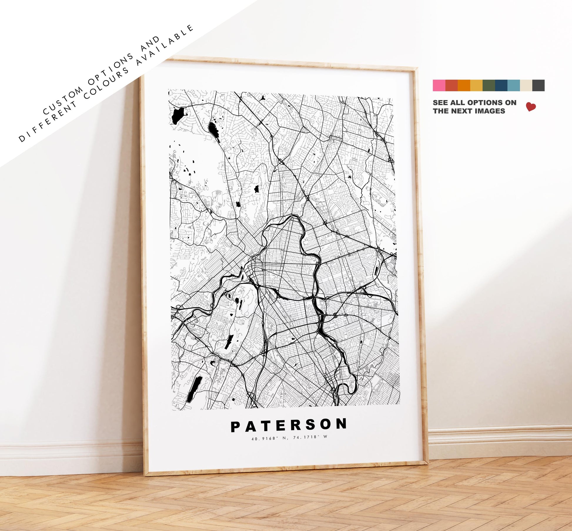 Paterson Map Print - City Map Poster - Map Art - USA City Maps - Paterson Print - Paterson Poster - Minimalist City Map - New Jersey