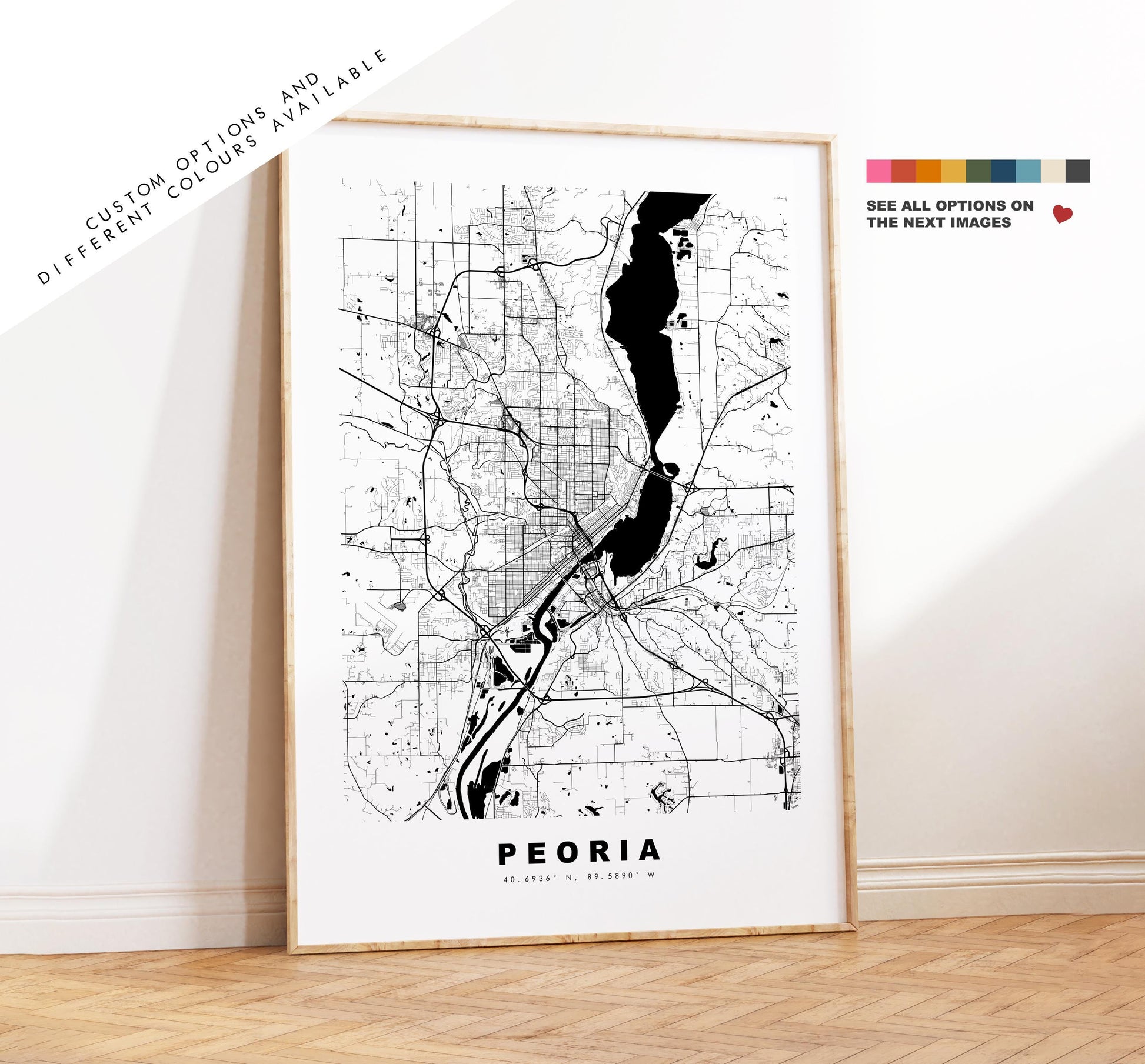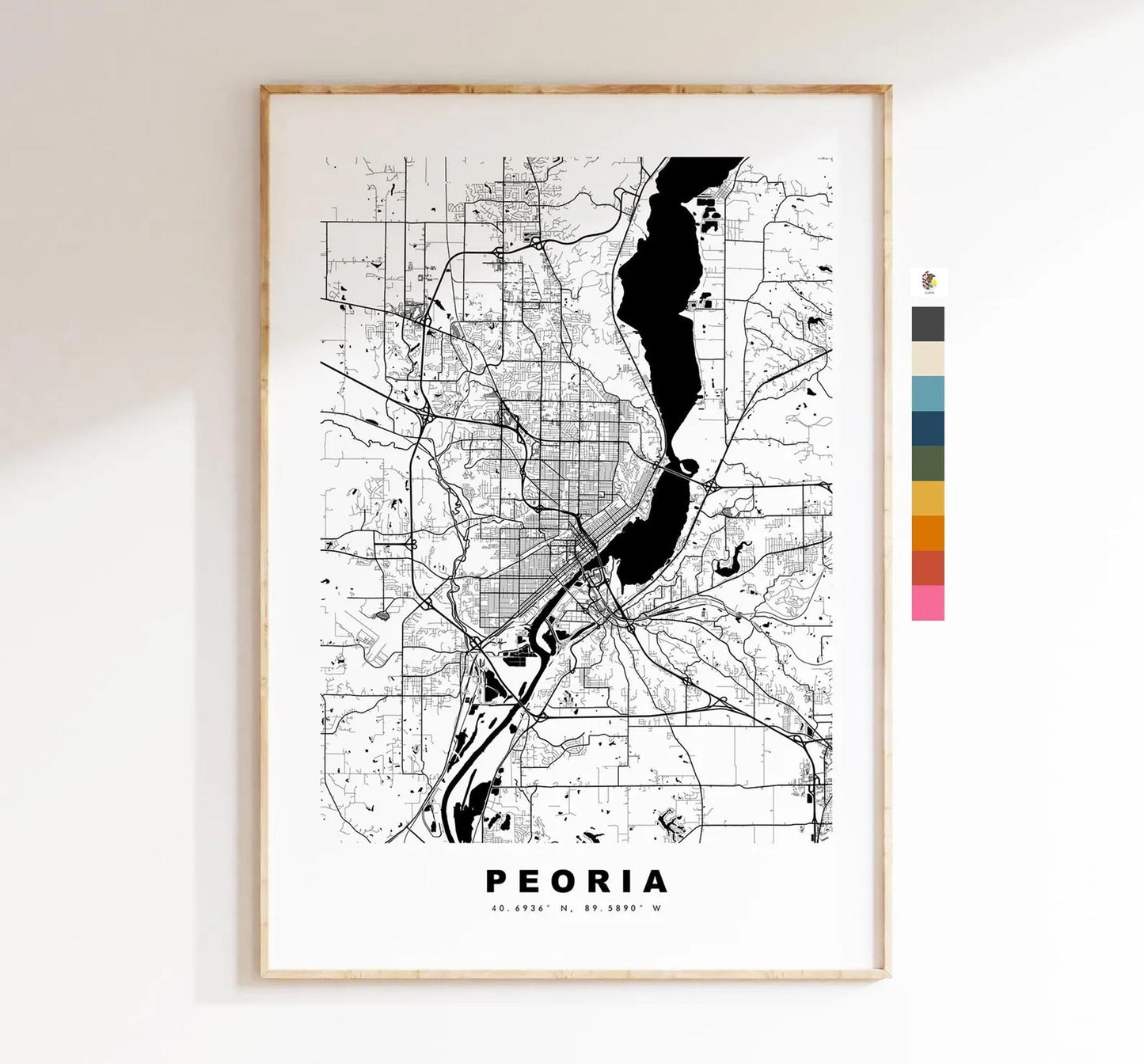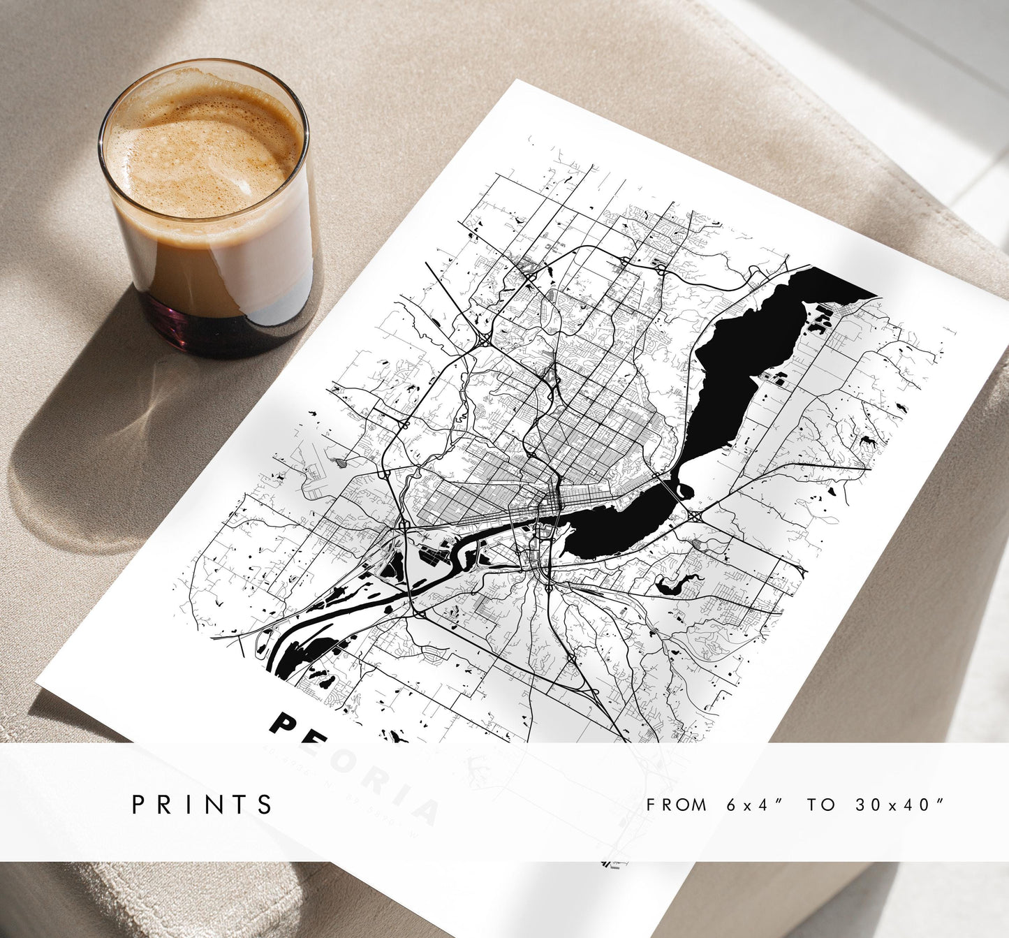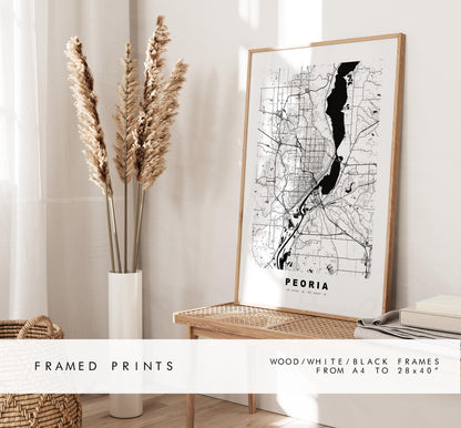 Peoria Map Print - City Map Poster - Map Art - USA City Maps - Peoria Print - Peoria Poster - Minimalist City Map - Illinois