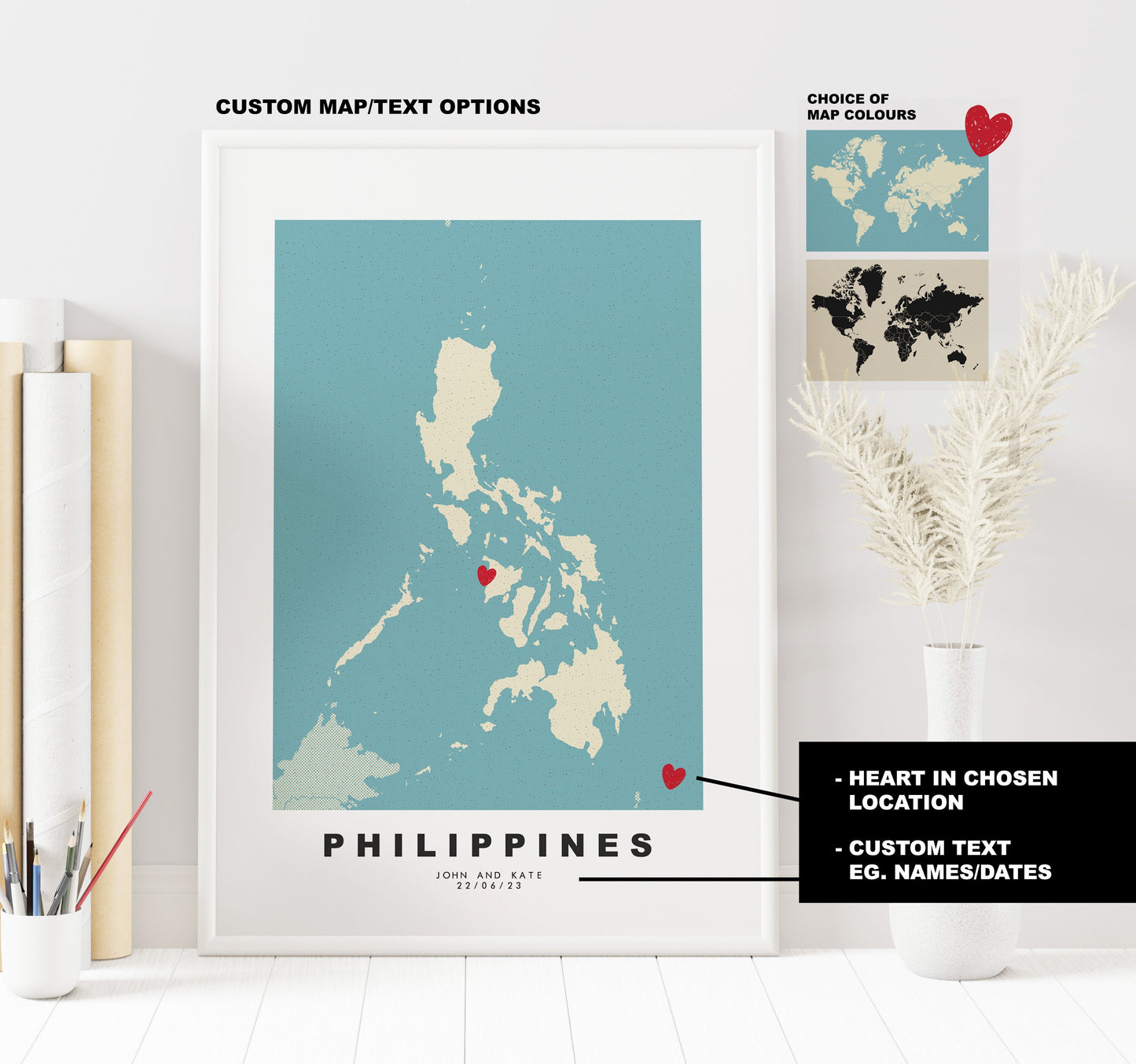 Philippines Map Print - Personalised Map Gift - Framed or Canvas Options Available - Custom Text Options - Personalised Gift - Asia