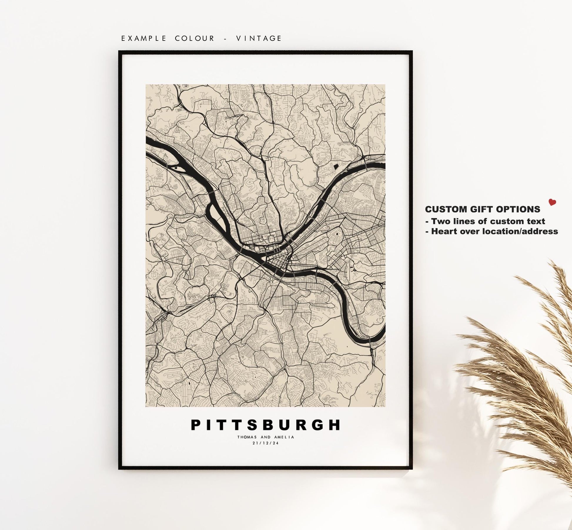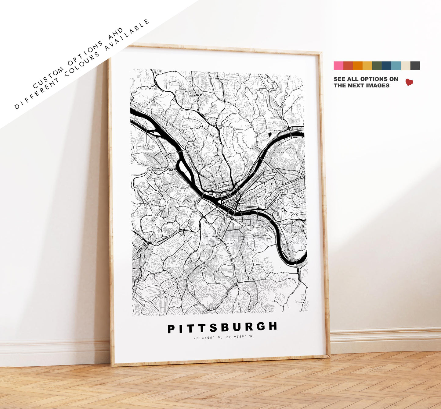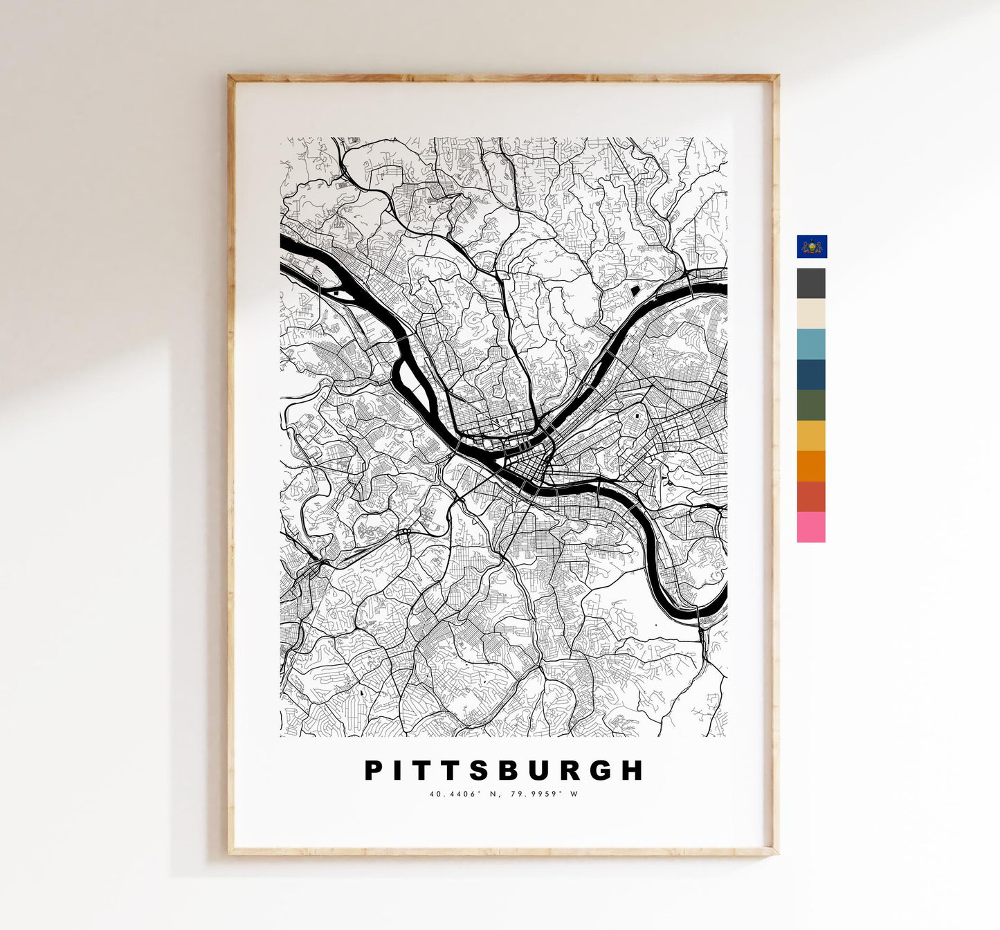 Pittsburgh Map Print - City Map Poster - Map Art - USA City Maps - Pittsburgh Print - Pittsburgh Poster - Minimalist City Map - Pennsylvania