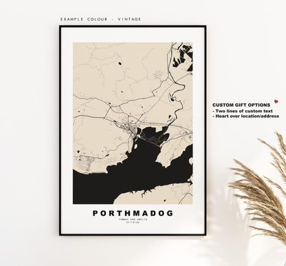 Porthmadog Map Print - Minimalist City Map Poster - Map Art - Wales - UK - Porthmadog Print - Porthmadog Poster - Different Colours Available