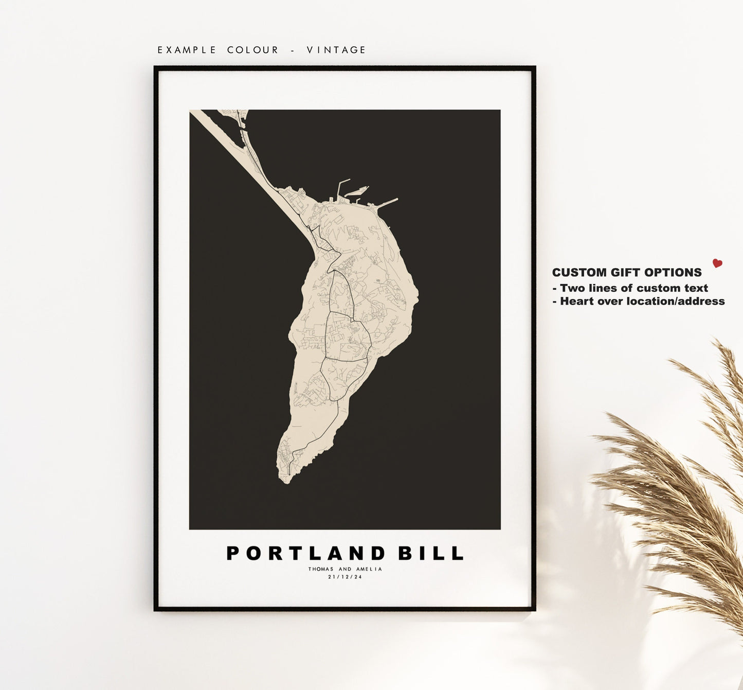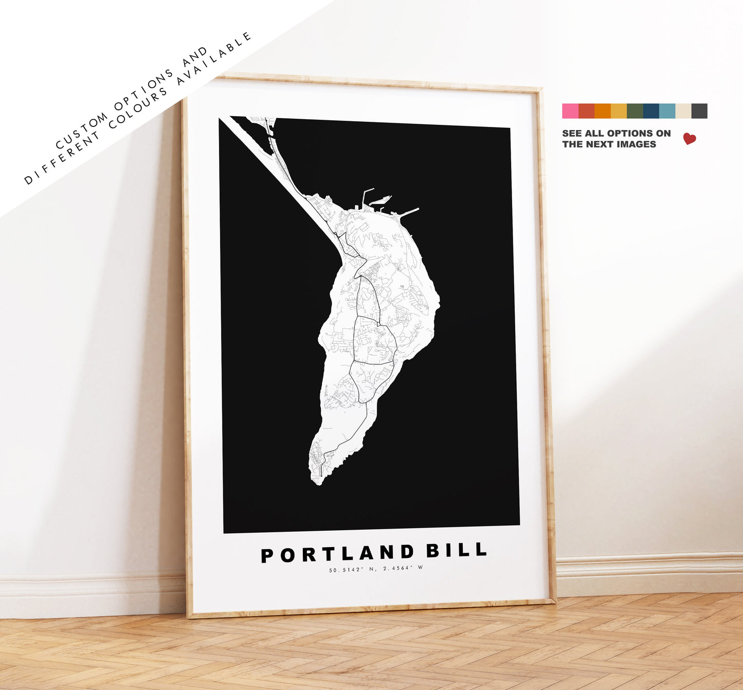Portland (UK) Map Print - Minimalist City Map Poster - Map Art - UK - Portland Bill Print - Portland Poster - Different Colours Available