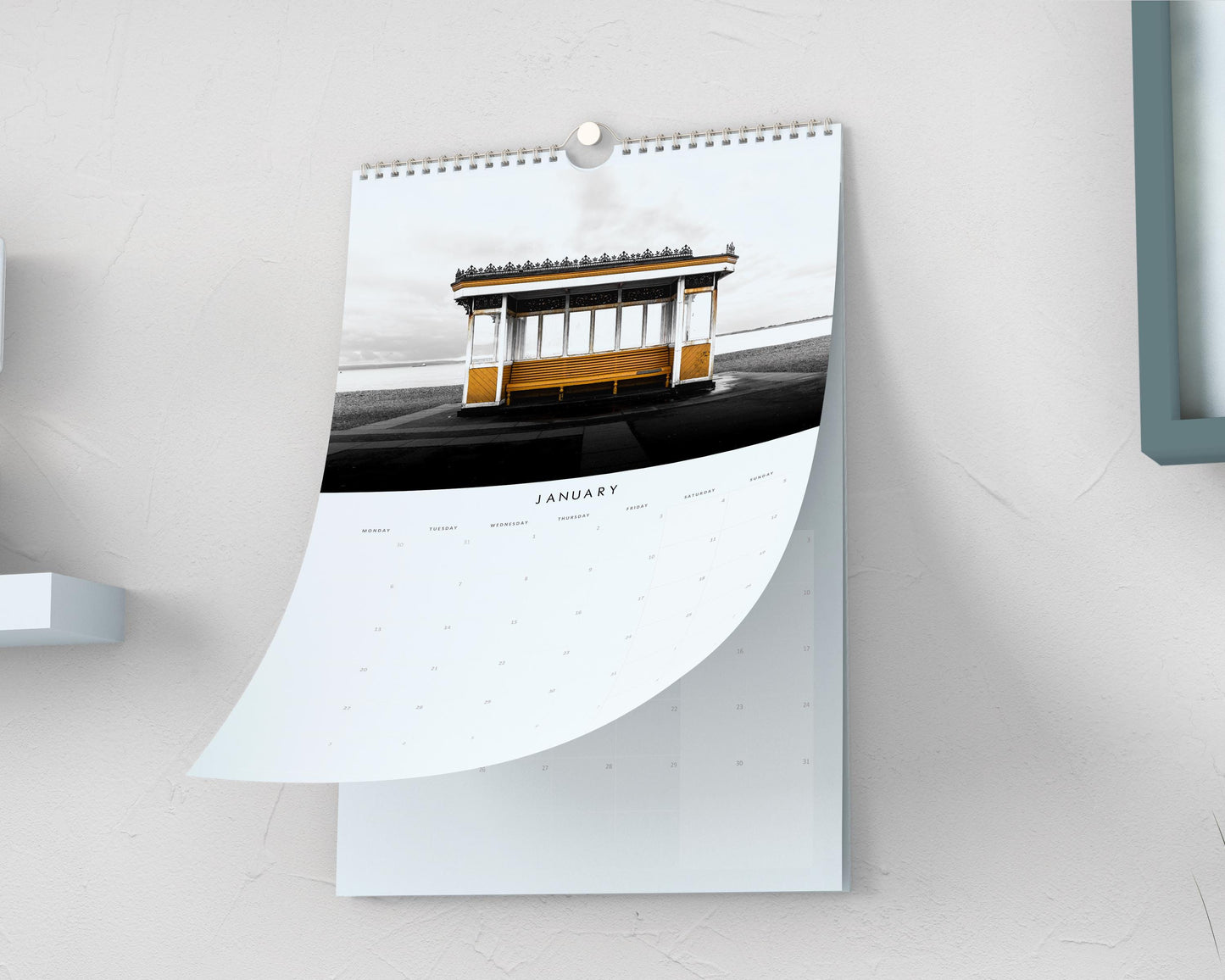 Each month features a wide image (see examples) above our modern, minimalist date template design, which has space for small notes under each date.ย