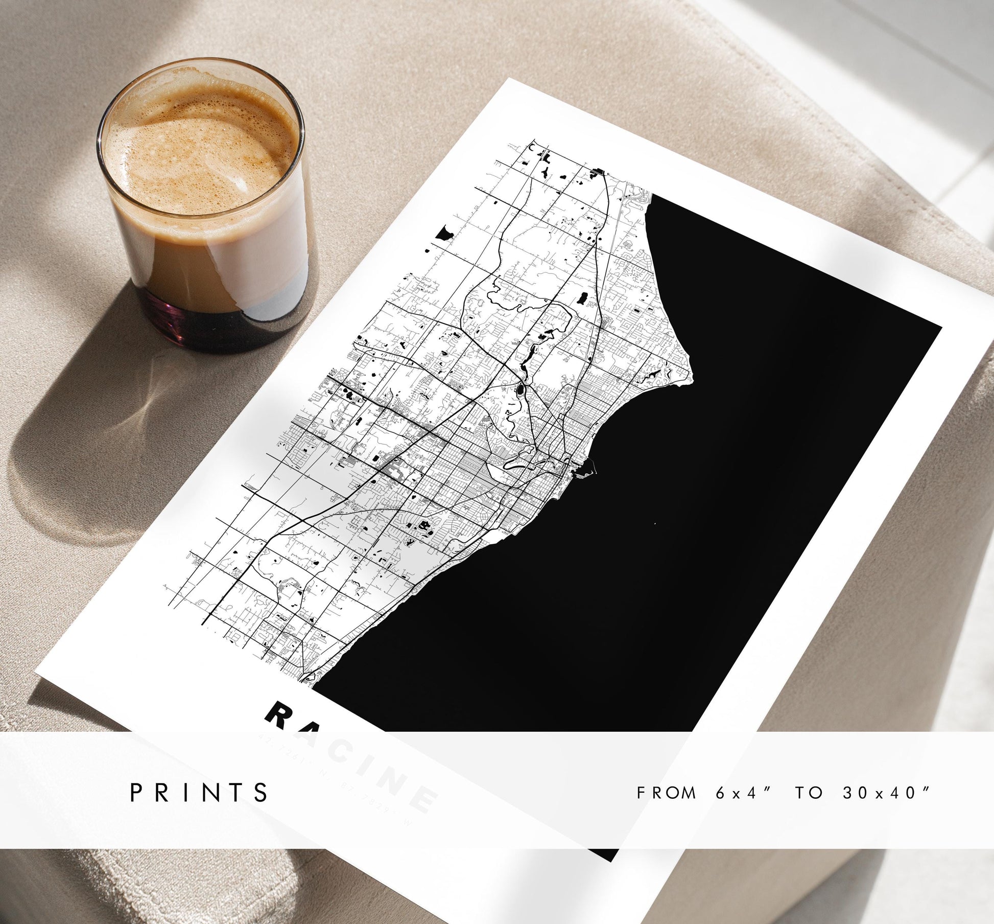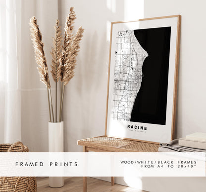 Racine Map Print - City Map Poster - Map Art - USA City Maps - Racine Print - Racine Poster - Minimalist City Map - Wisconsin