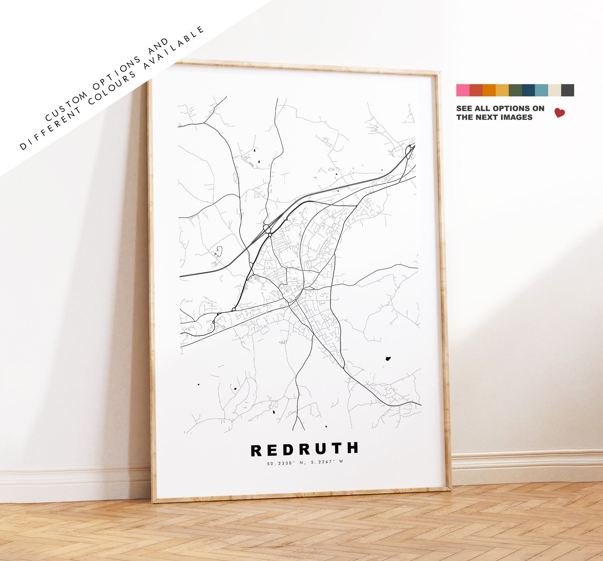 Redruth Map Print - Minimalist City Map Poster - Map Art - UK - Redruth Print - Redruth Poster - Different Colours Available