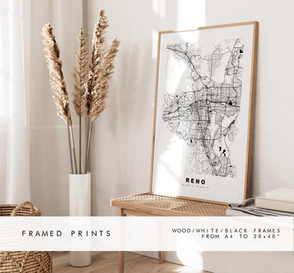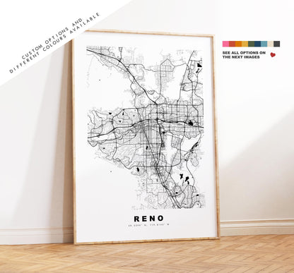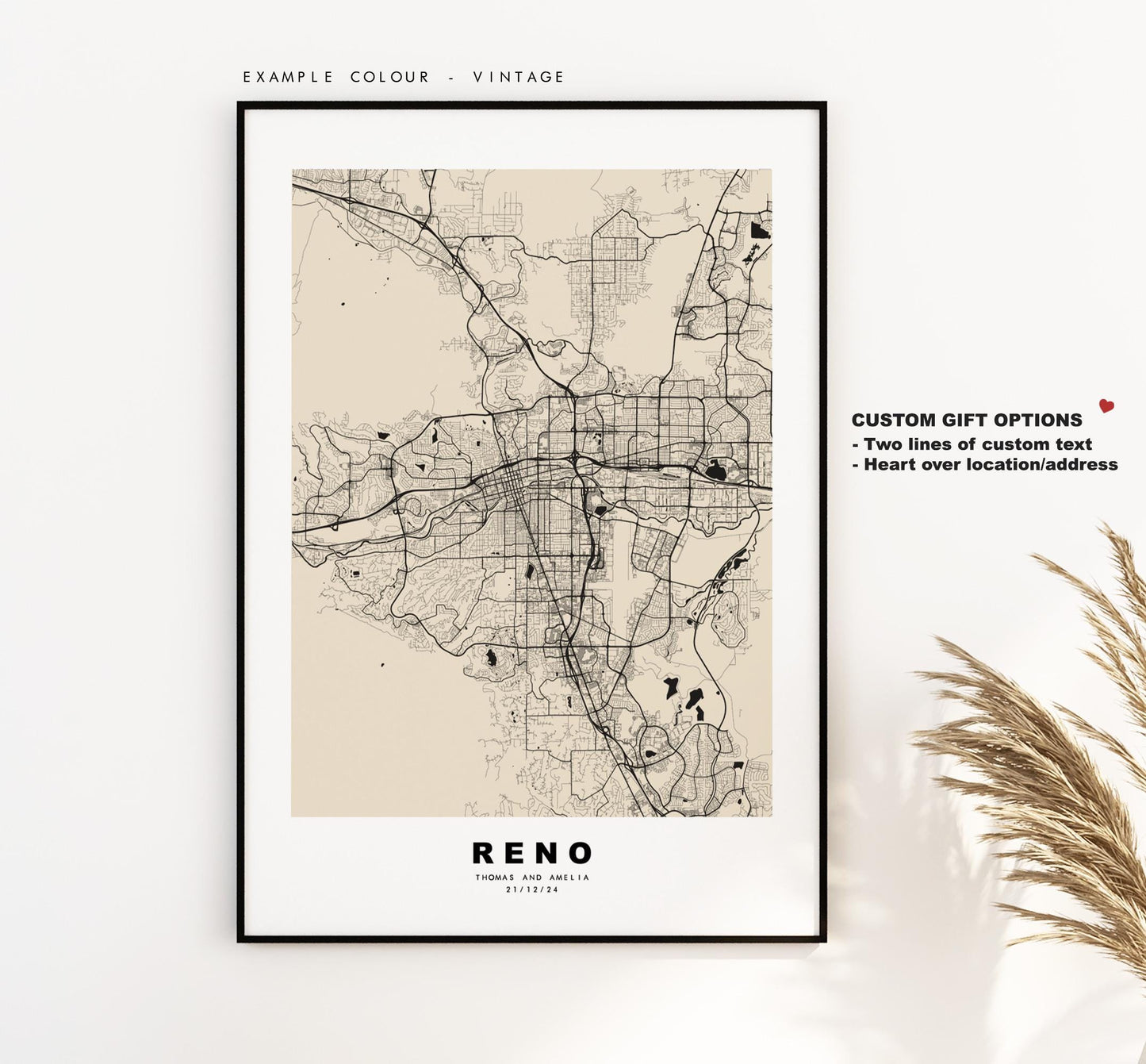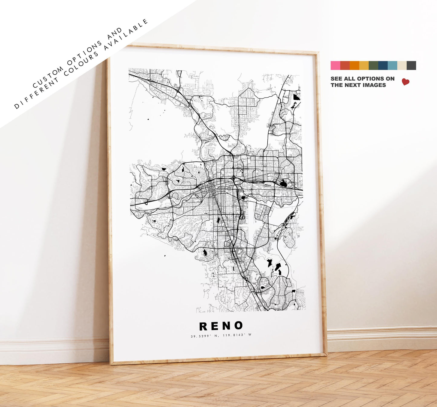Reno Map Print - City Map Poster - Map Art - USA City Maps - Reno Print - Reno Poster - Minimalist City Map - Nevada