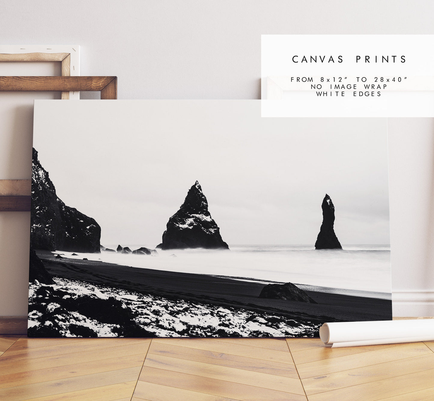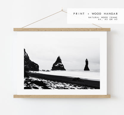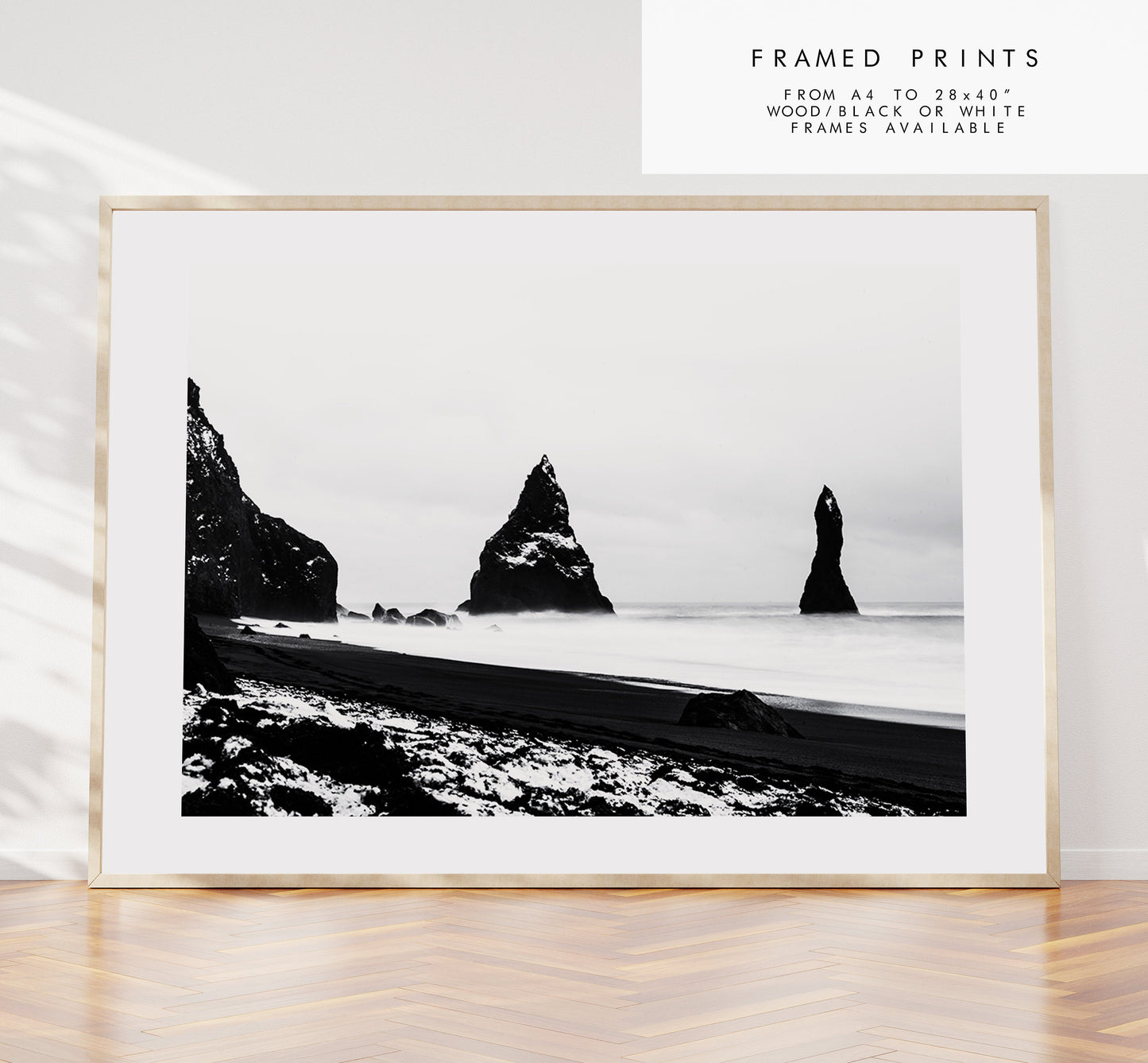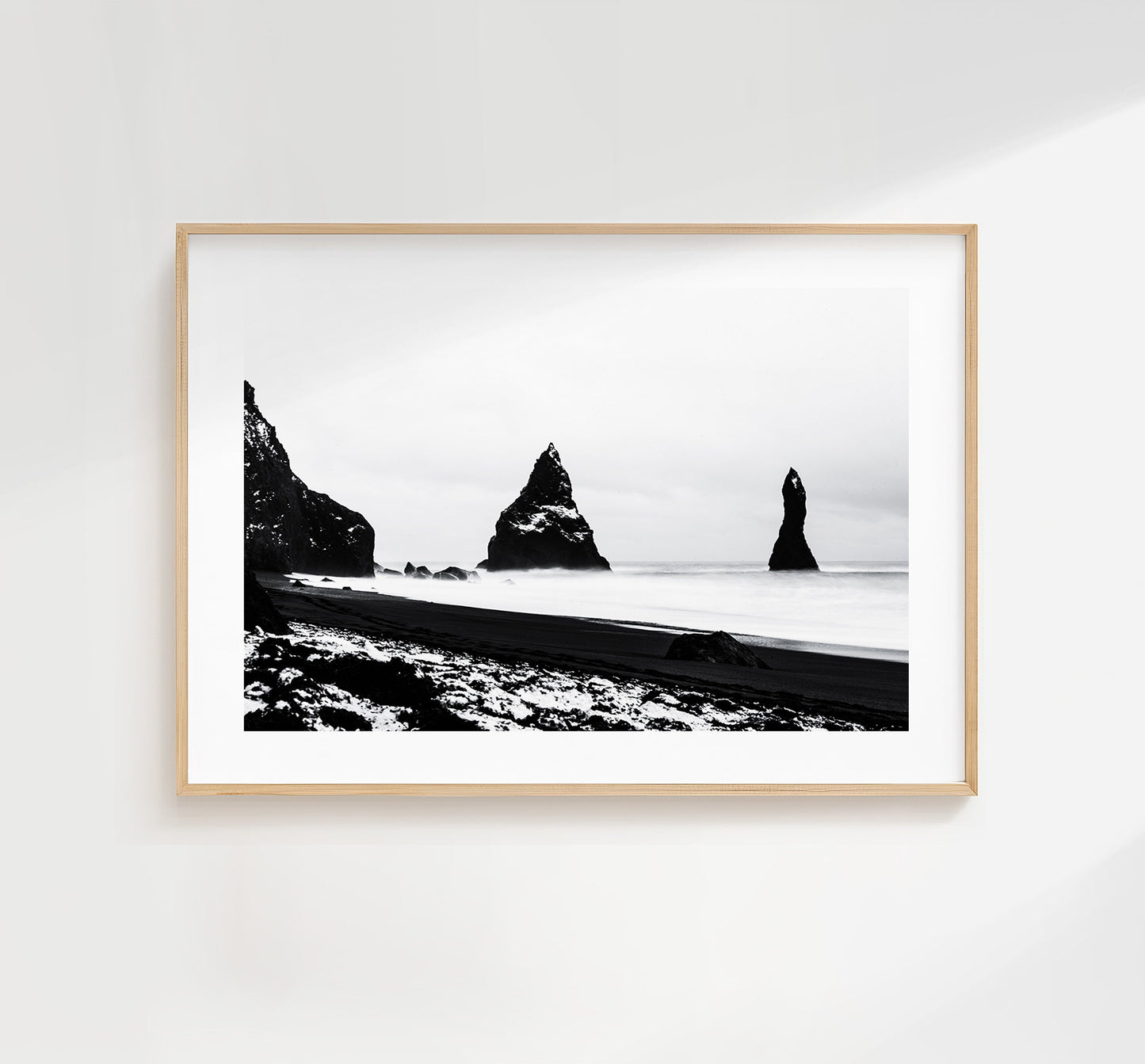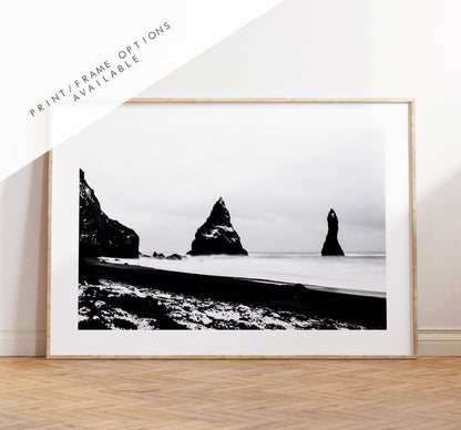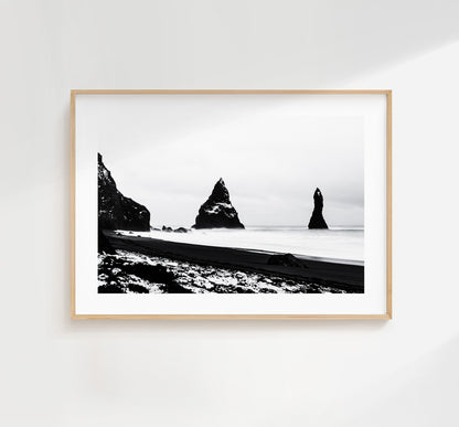 Reynisfjara Beach - Iceland Photography Print - Iceland Wall Art - Iceland Poster - Black and White Photography - Landscape Beach Print