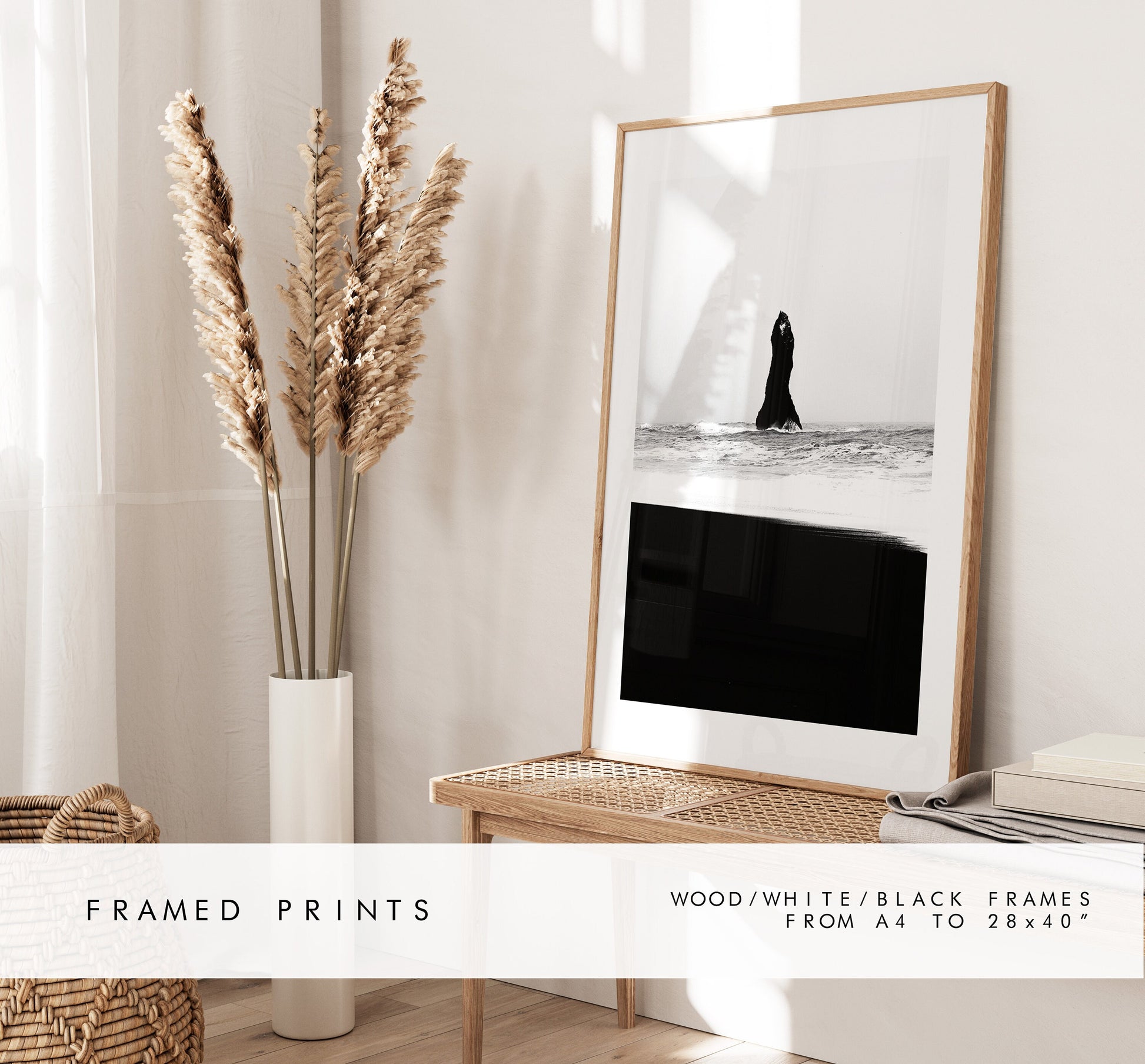Reynisfjara - Iceland Photography Print - Iceland Wall Art - Iceland Poster - Black and White Photography - Minimalist - Black Sand Beach