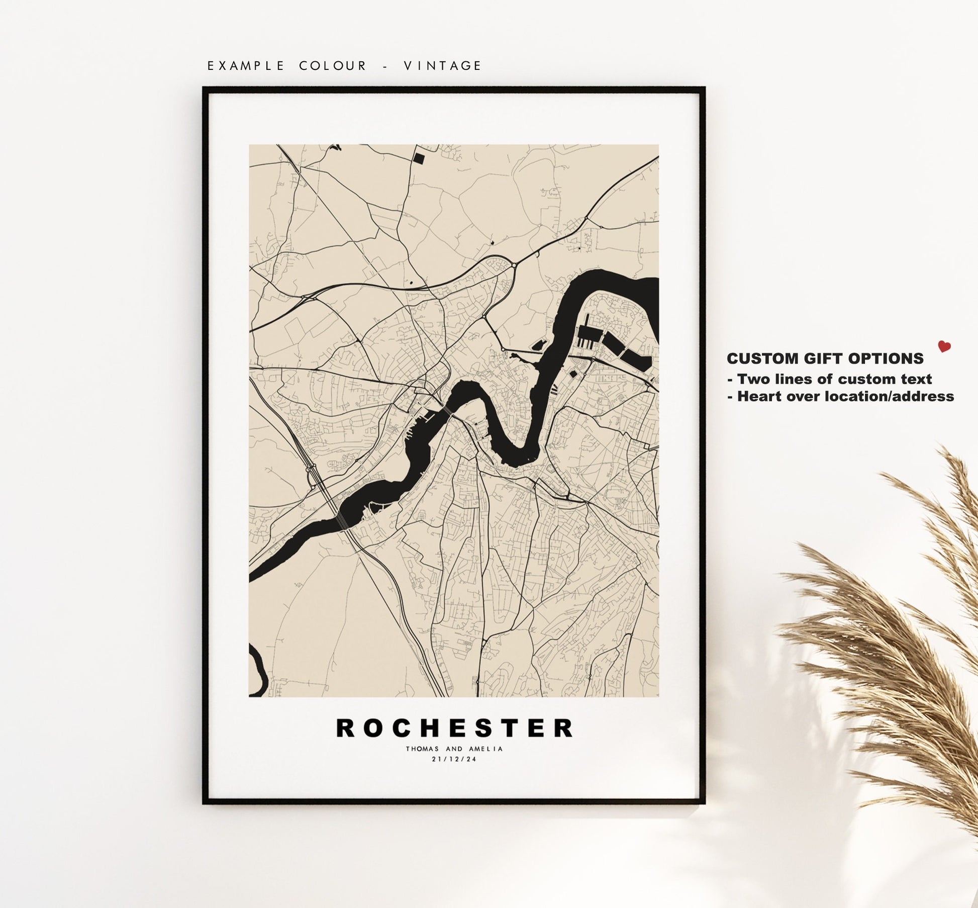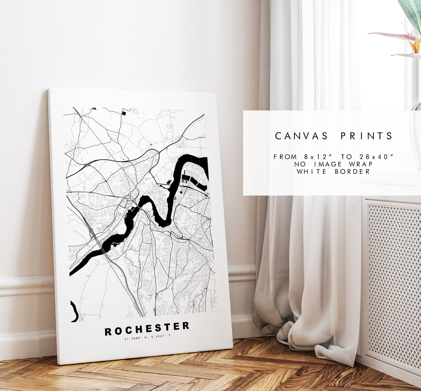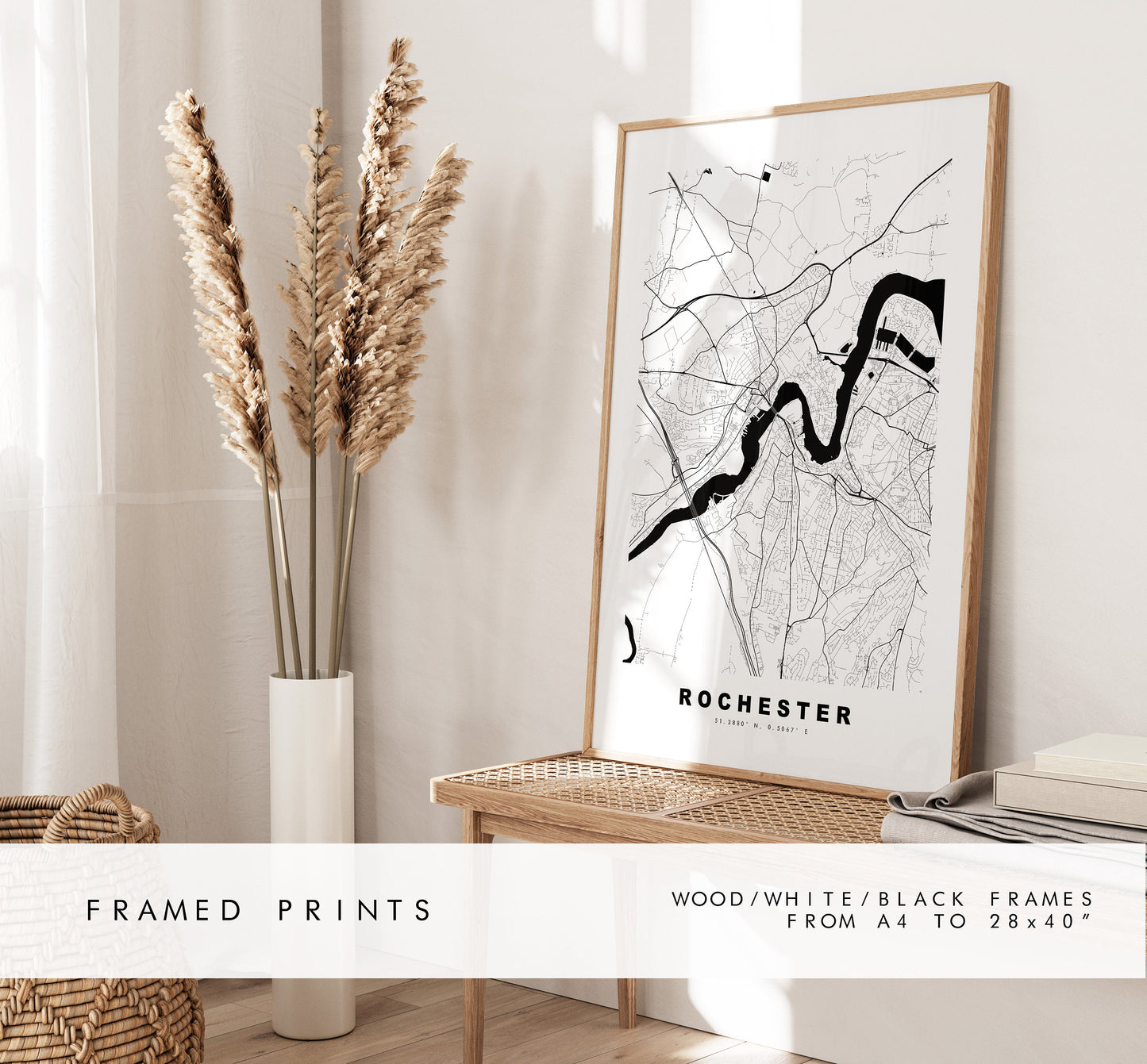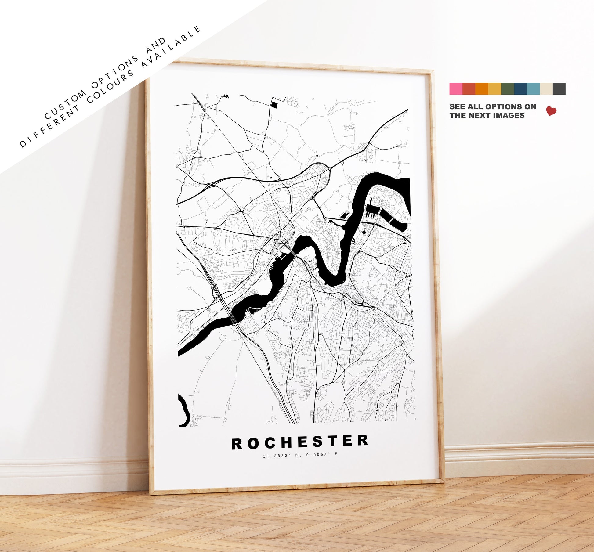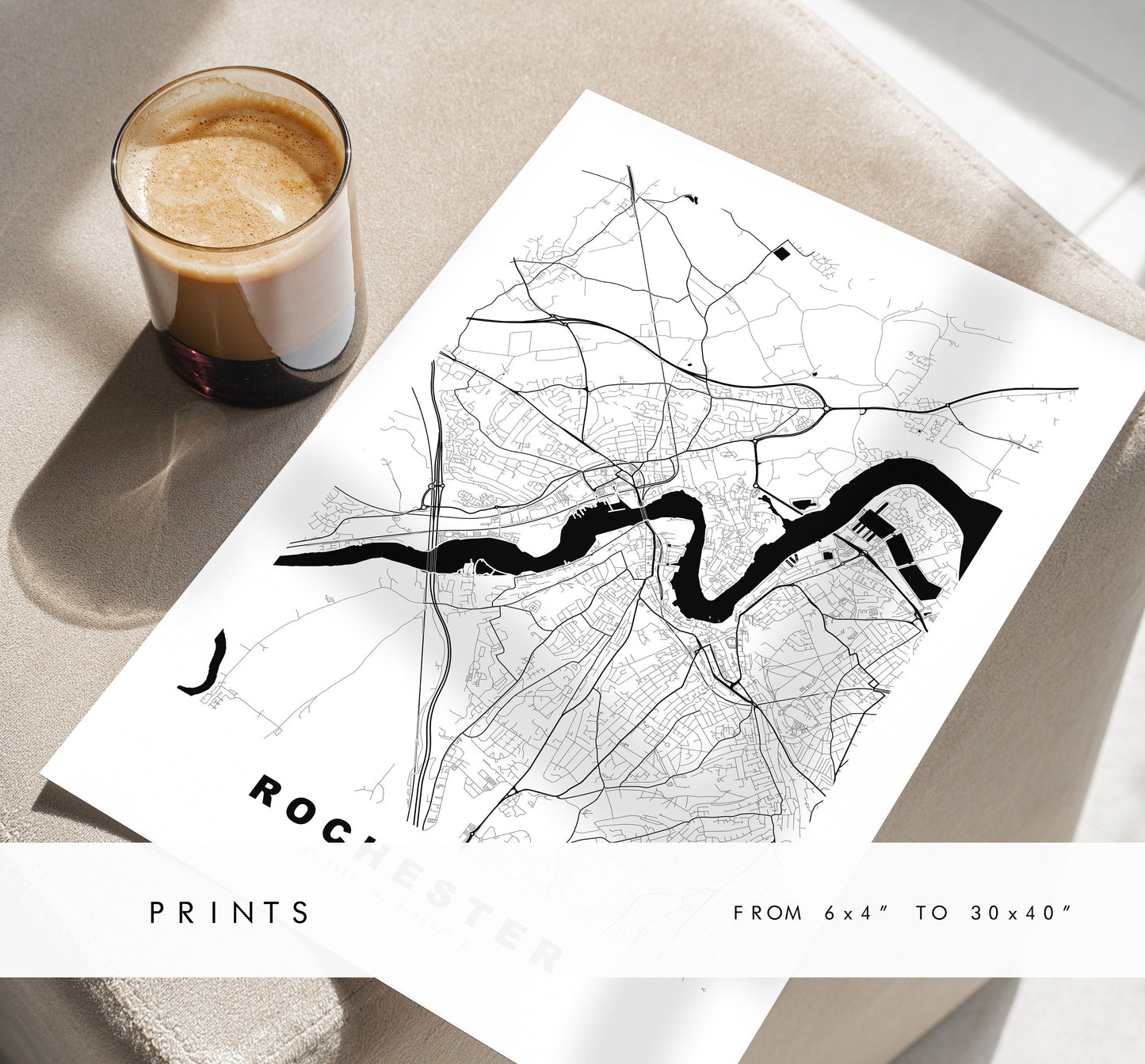 Rochester Map Print - Minimalist City Map Poster - Map Art - UK - Rochester Print - Rochester Poster - Different Colours Available
