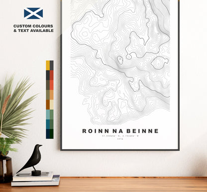 Roinn na Beinne Print - Contour Map - Roinn na Beinne Poster - Scotland - Topographic Map - Print - Wall Art - Roinn na Beinne Map