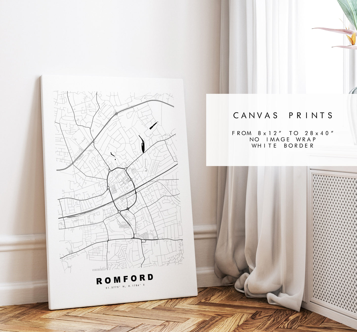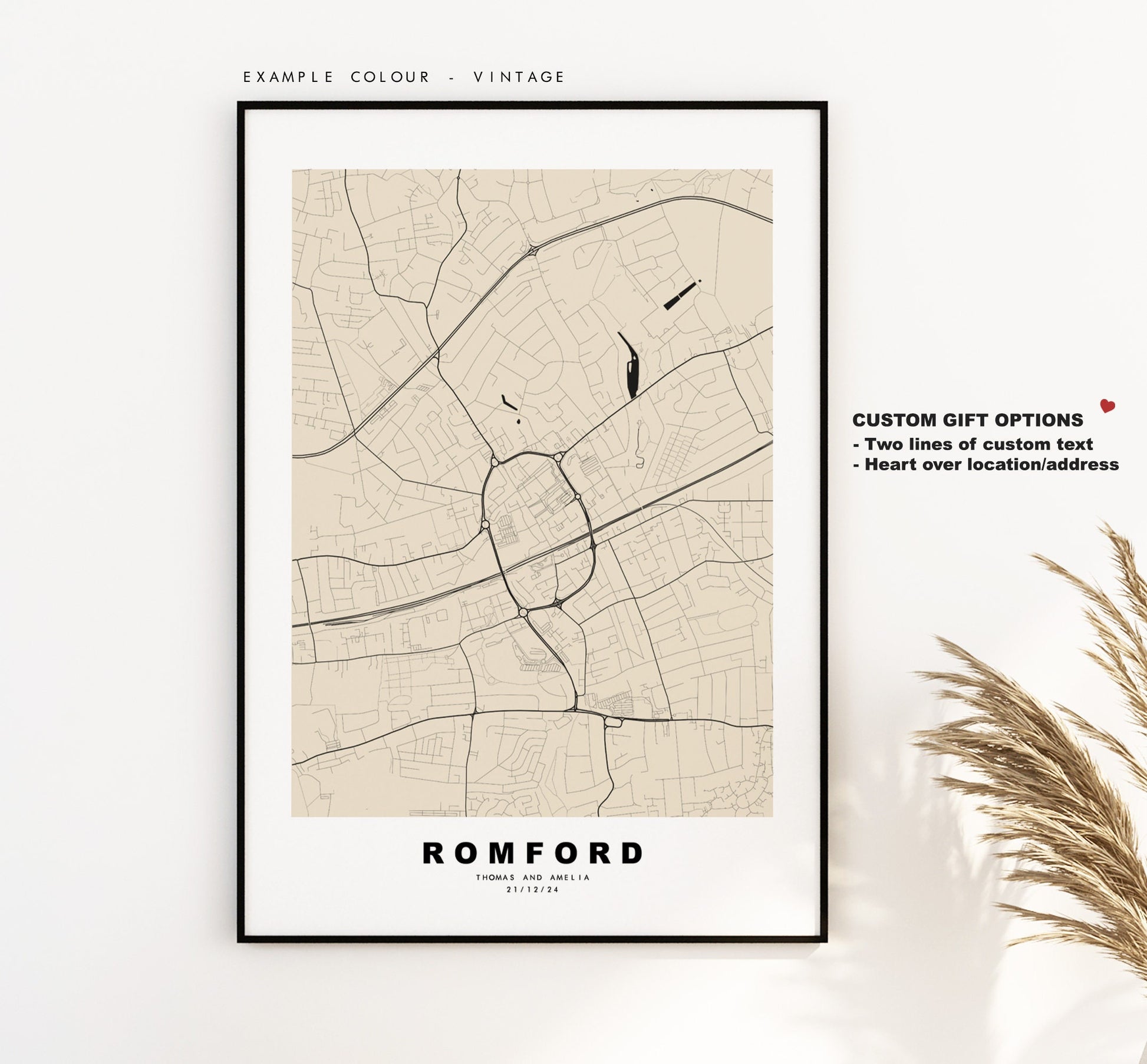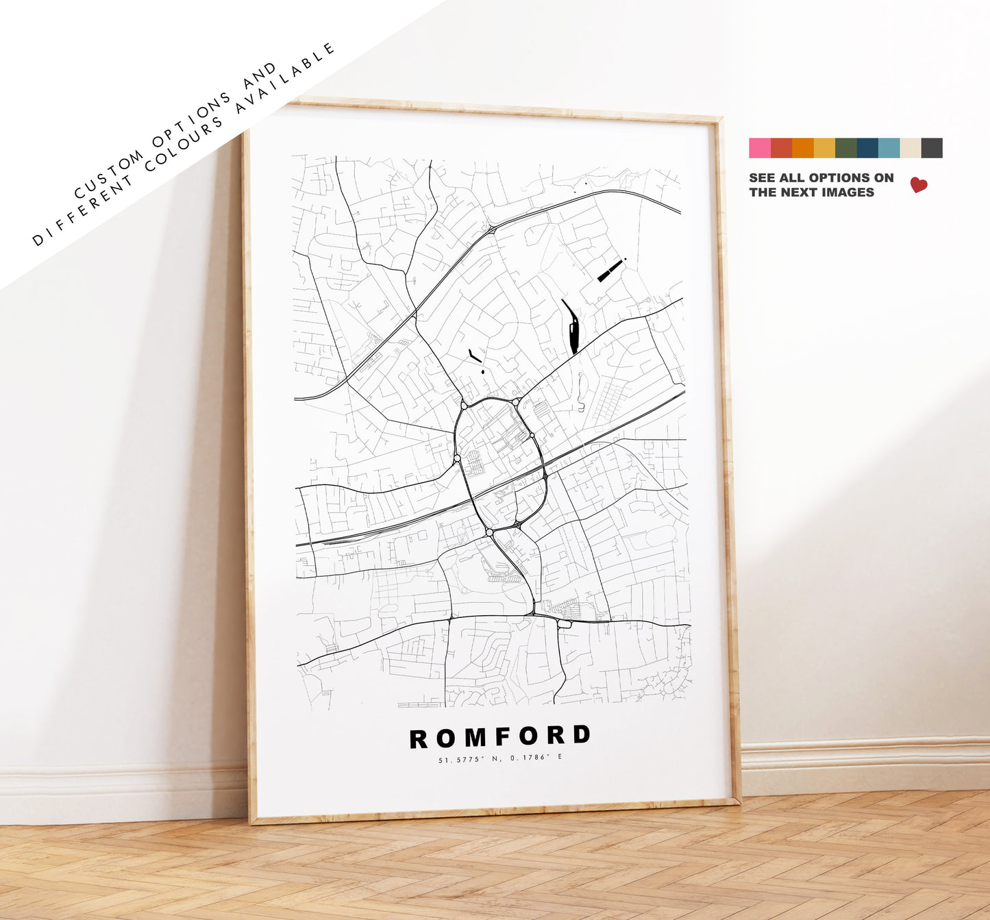 Romford Map Print - Minimalist City Map Poster - Map Art - London, UK - Romford Print - Romford Poster - Different Colours Available