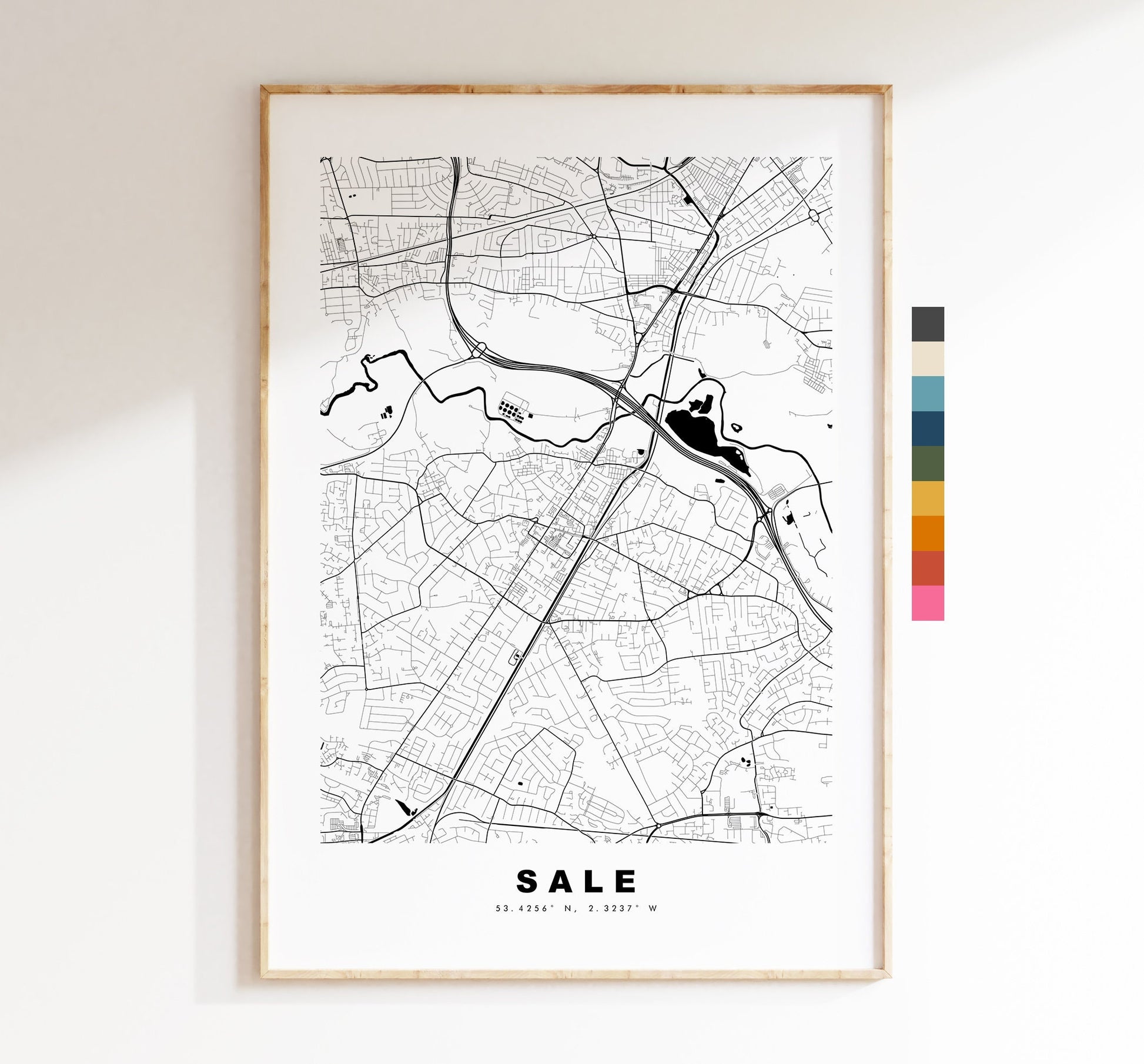 Sale Map Print - Minimalist City Map Poster - Map Art - UK - Sale Print - Sale Manchester - Poster - Different Colours Available
