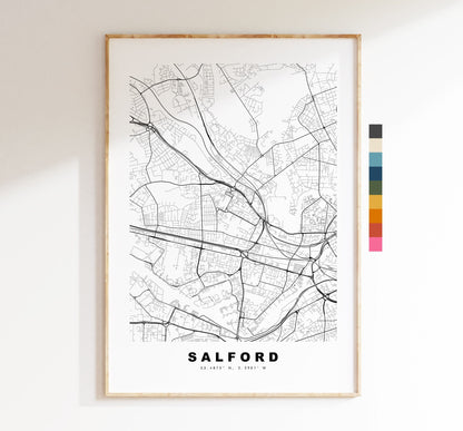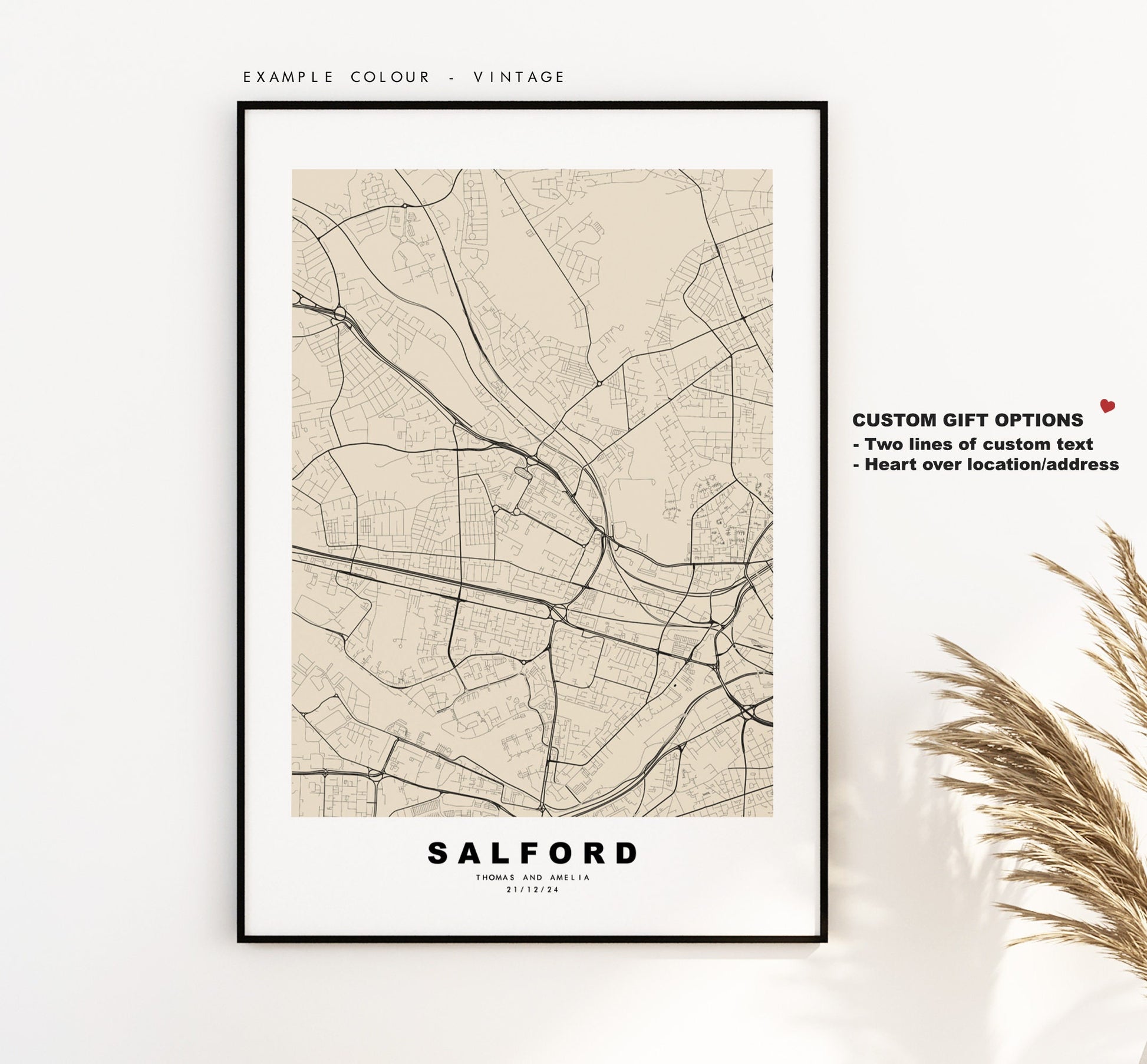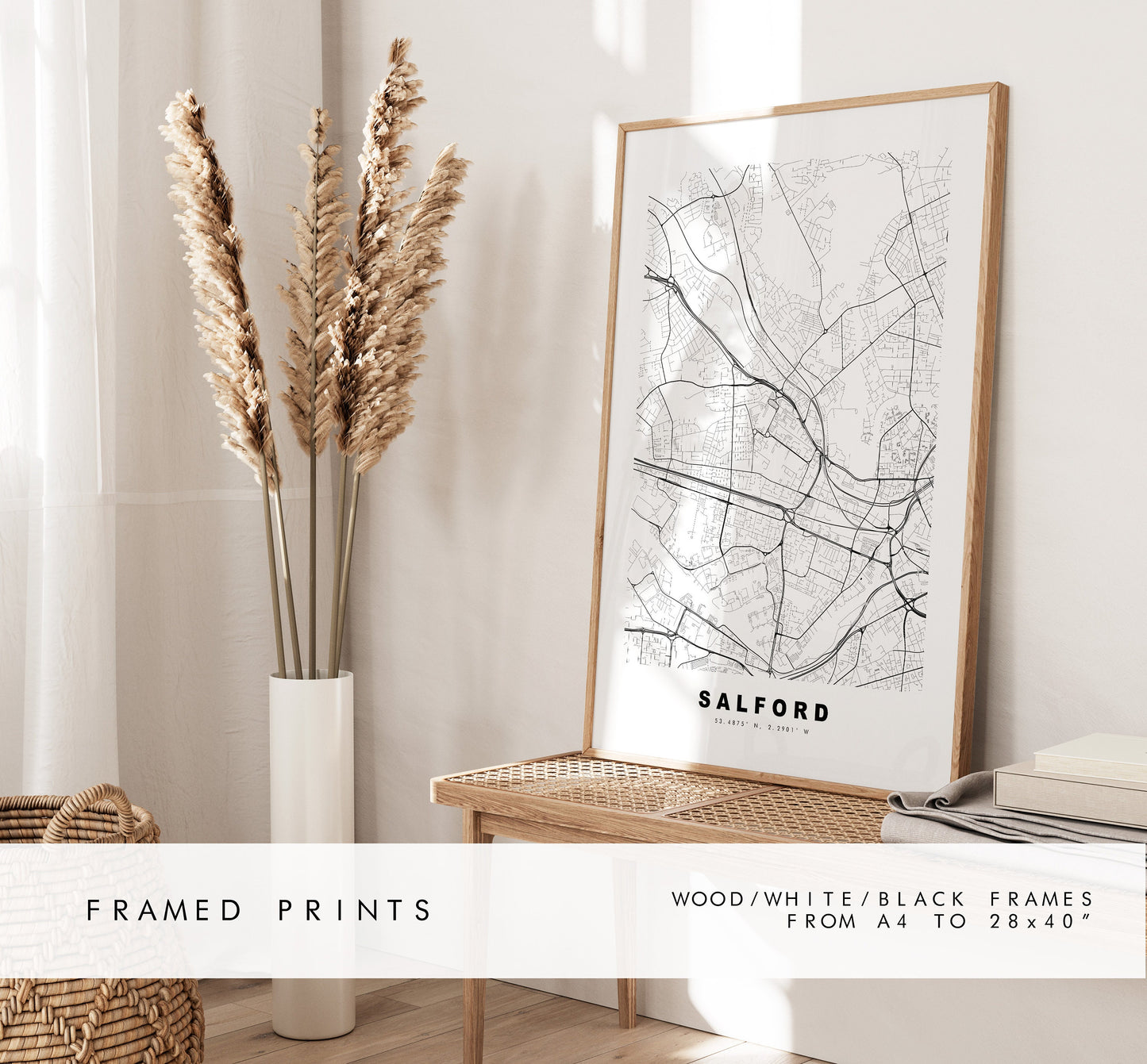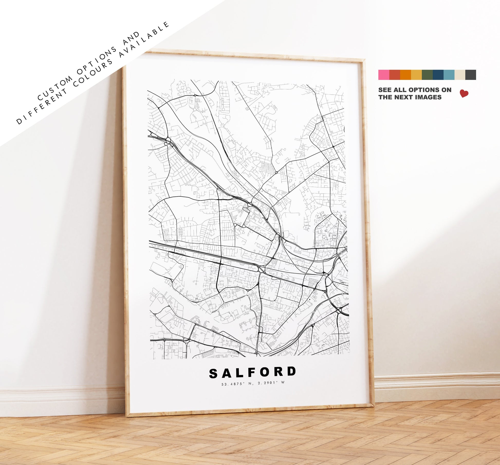 Salford Map Print - Minimalist City Map Poster - Map Art - UK - Salford Print - Salford Manchester - Poster - Different Colours Available