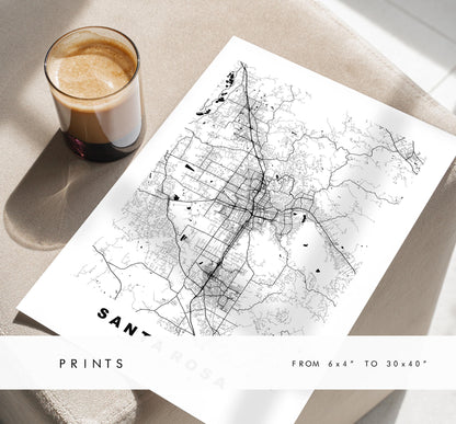 Santa Rosa Map Print - City Map Poster - Map Art - USA City Maps - Santa Rosa Print - Santa Rosa Poster - Minimalist City Map - California