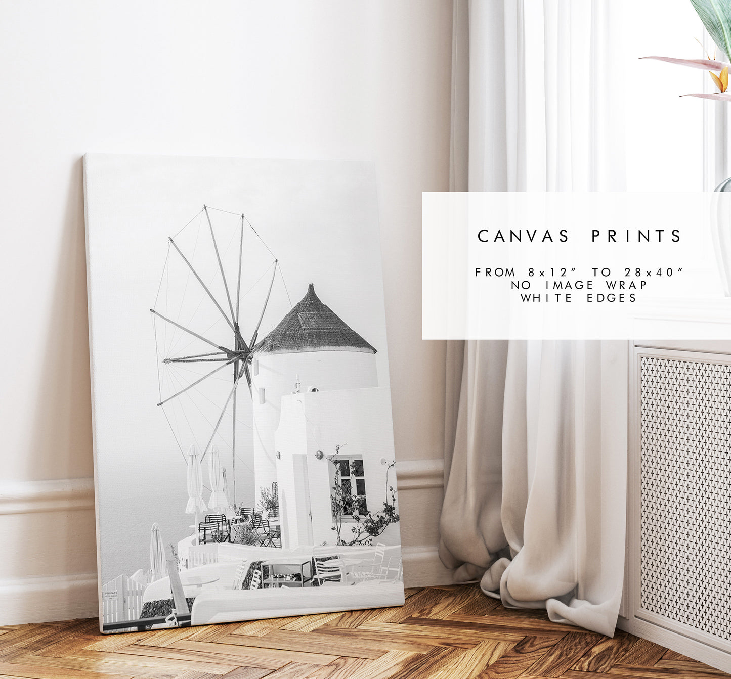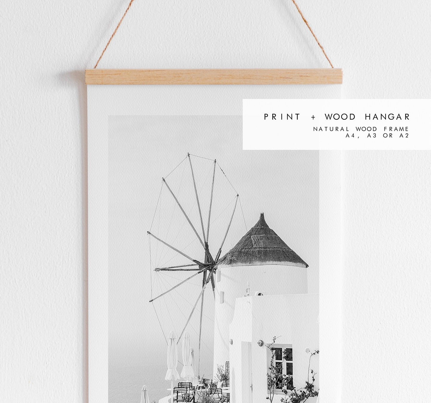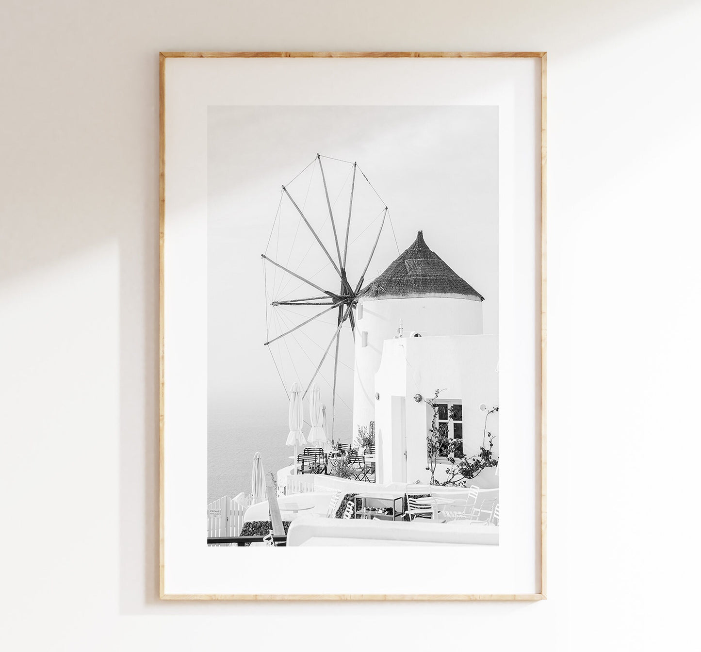 Santorini Black and White Print - Greece - Print - Poster - Santorini Photography - Greece Wall Art - Monochrome - Windmill - Black & White