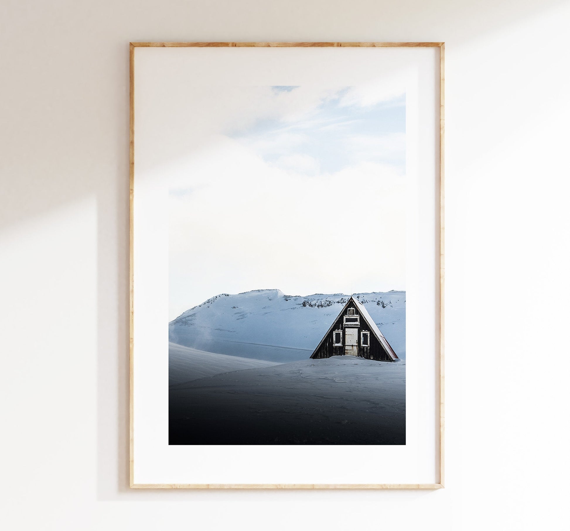 Scandinavian Print - Iceland Photography Print - Iceland Wall Art - Iceland Poster - House in the Snow - Snaefellsnes - Northern Iceland
