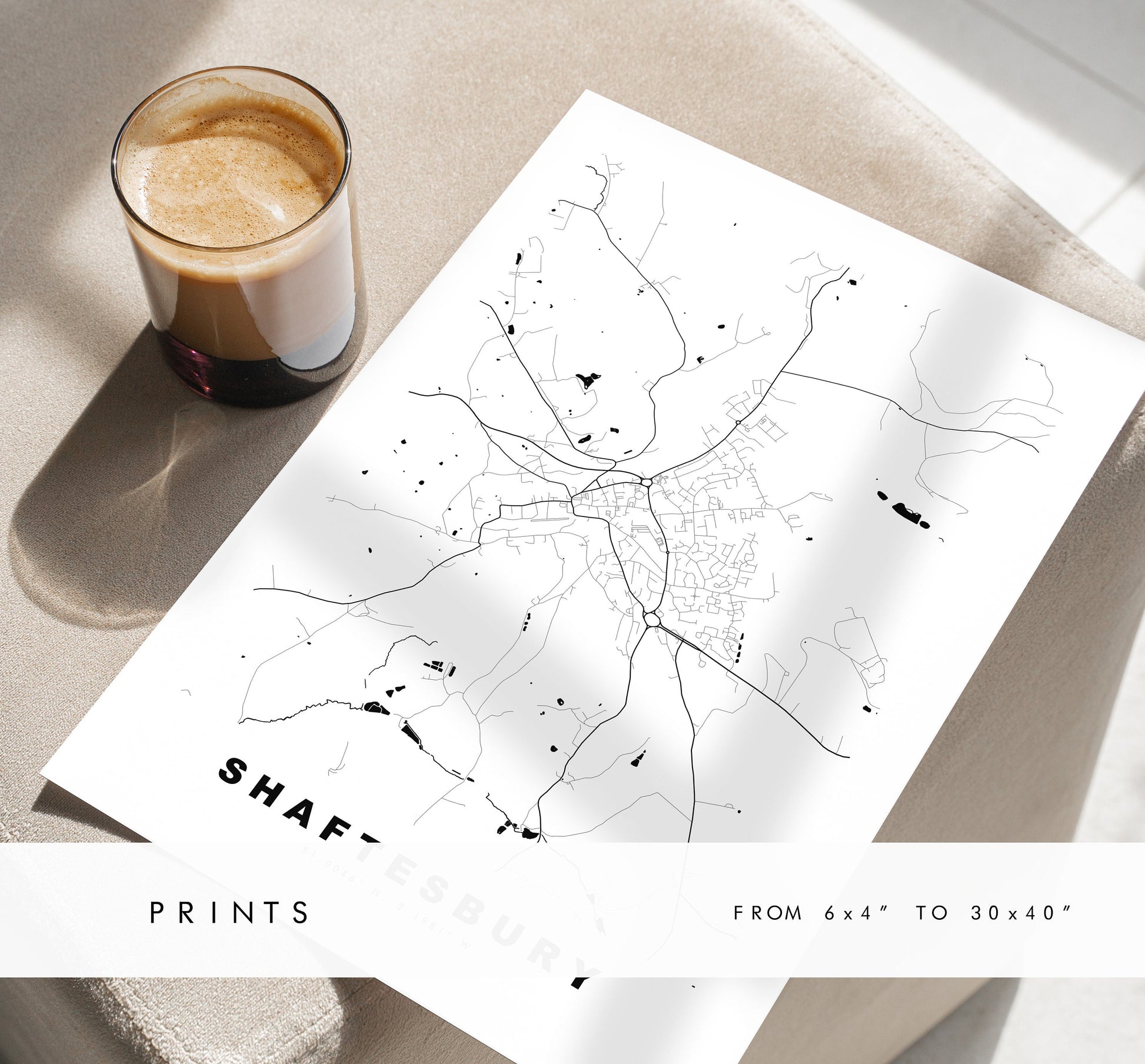 Shaftesbury Map Print - Minimalist City Map Poster - Map Art - UK - Shaftesbury Print - Shaftesbury Poster - Different Colours Available