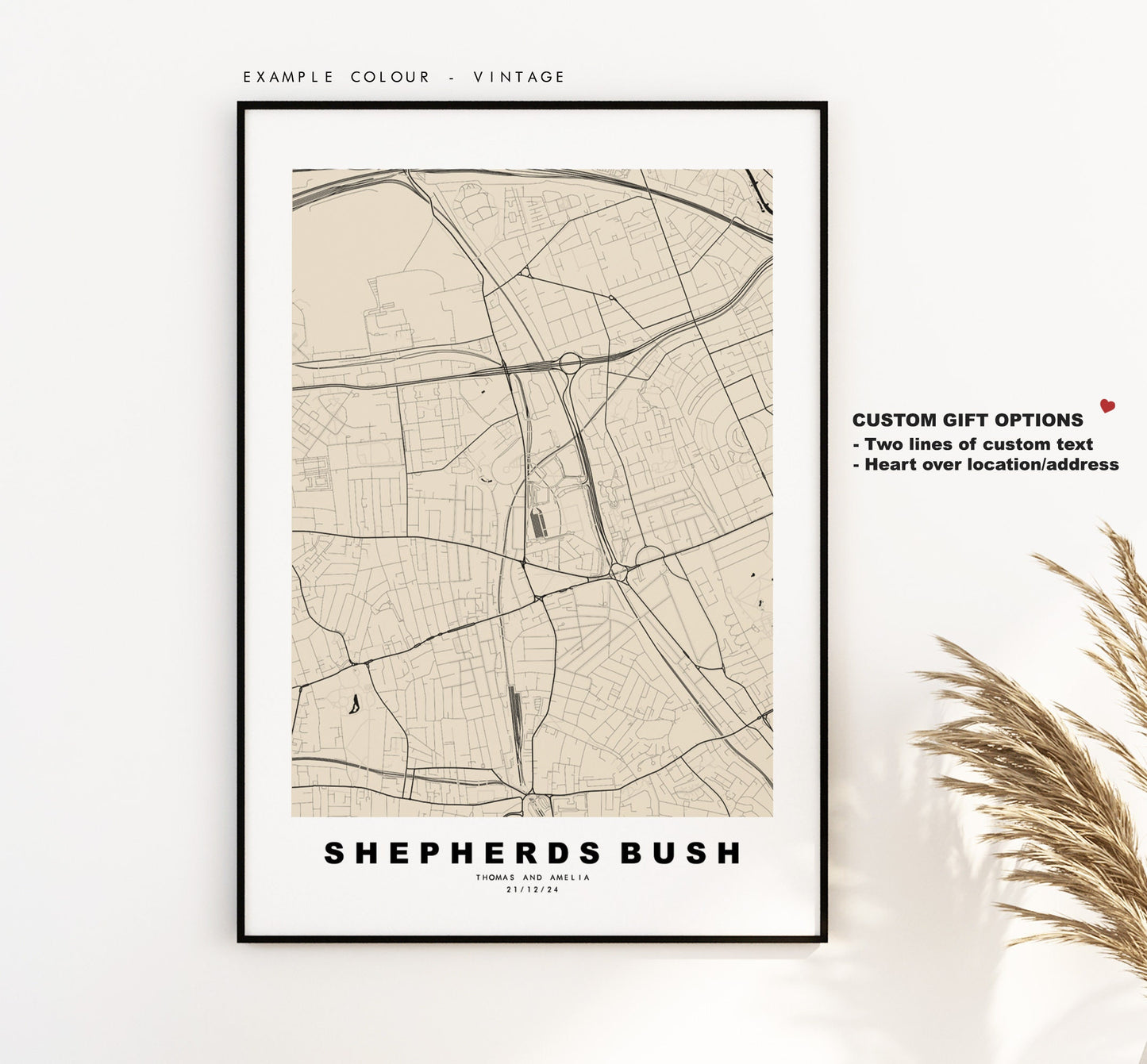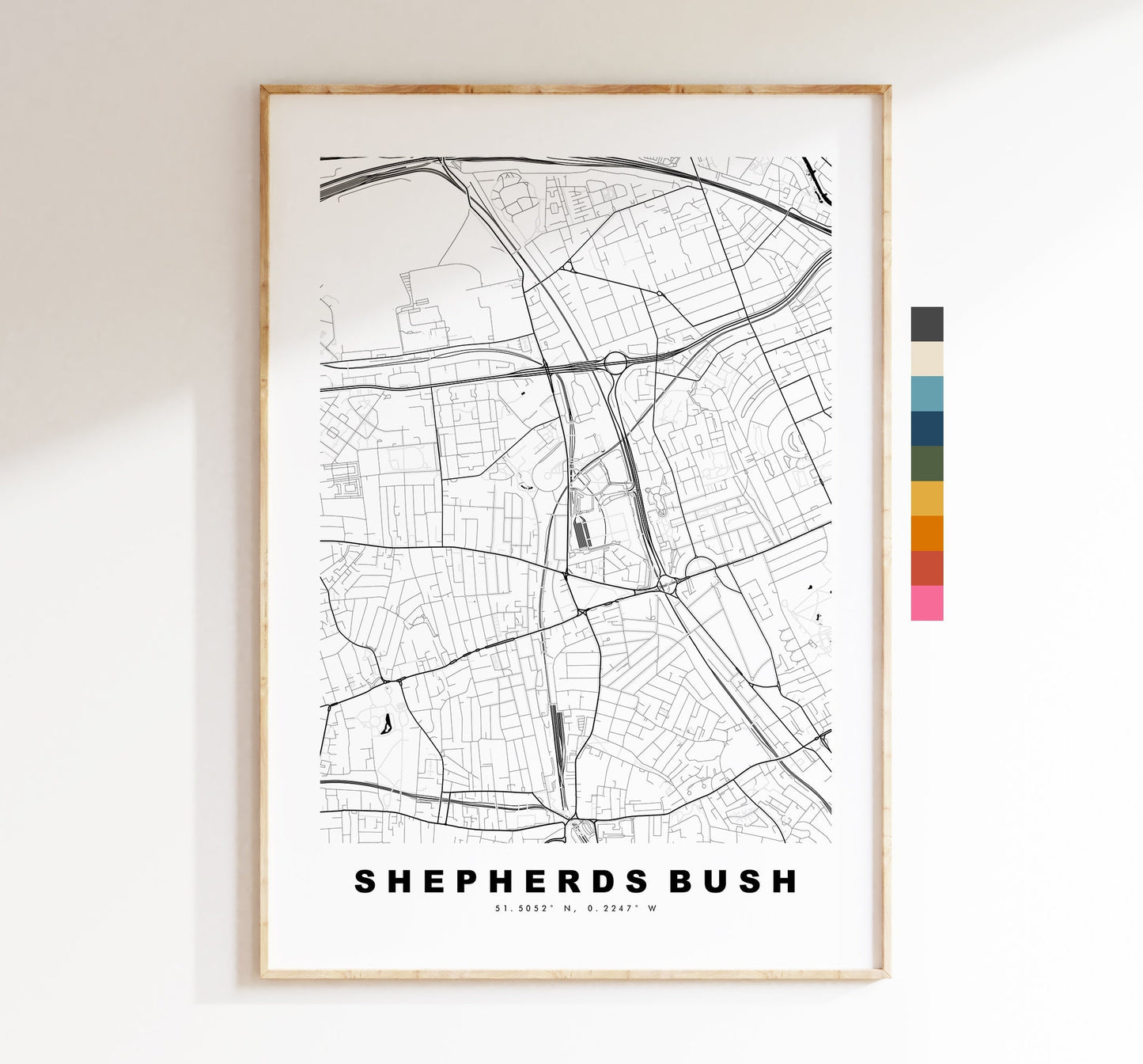 Shepherds Bush Map Print - Minimalist City Map Poster - Map Art - London, UK - Shepherds Bush Print - Poster - Different Colours Available