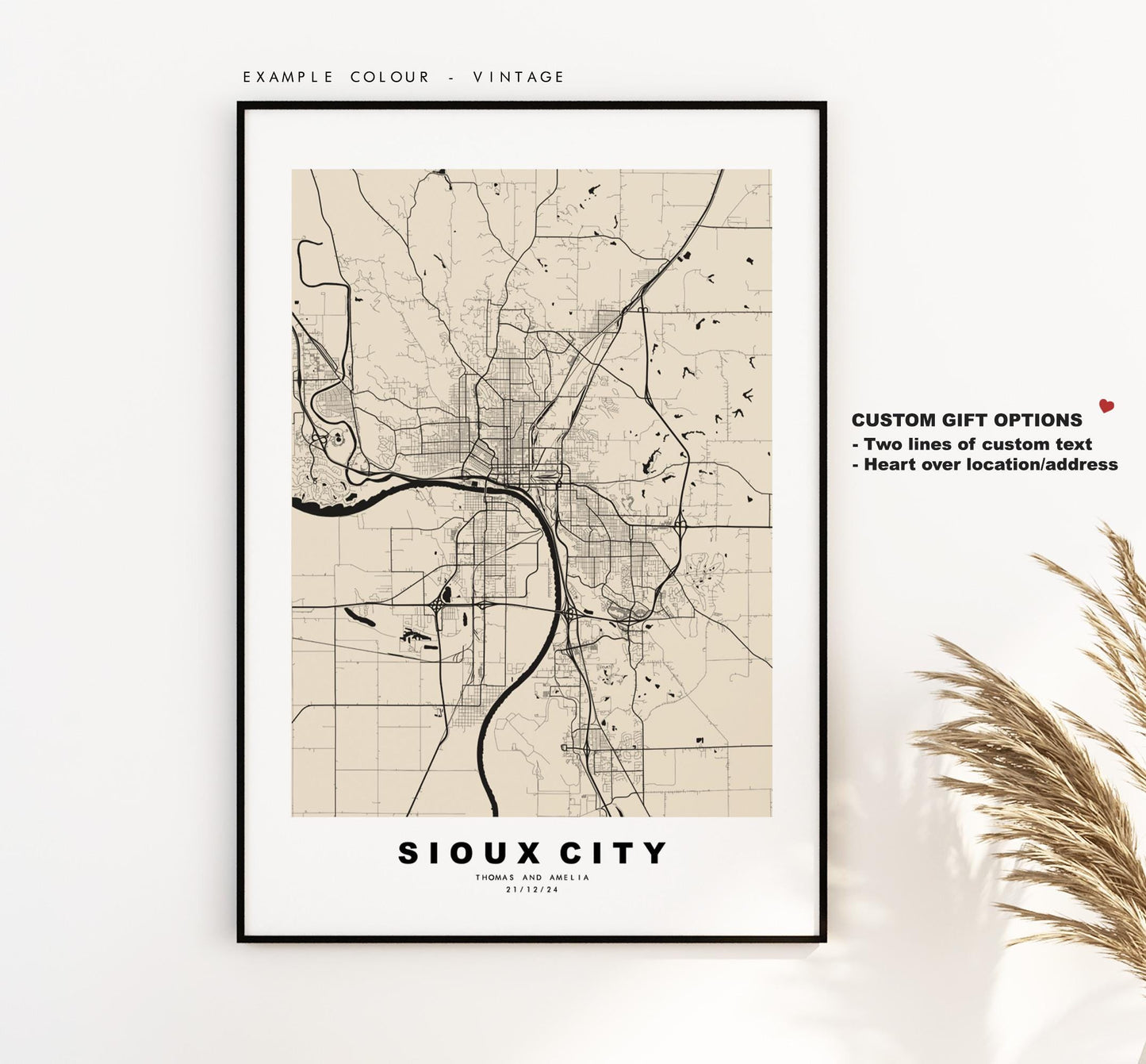 Sioux City Map Print - City Map Poster - Map Art - USA City Maps - Sioux City Print - Sioux City Poster - Minimalist City Map - Iowa