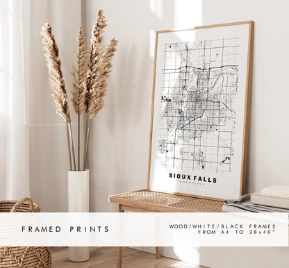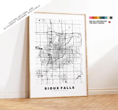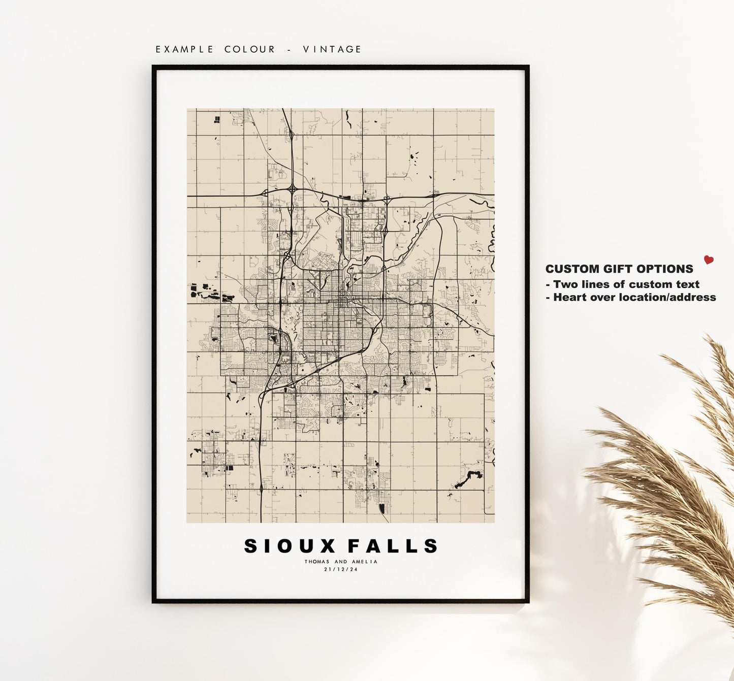 Sioux Falls Map Print - City Map Poster - Map Art - USA City Maps - Sioux Falls Print - Poster - Minimalist City Map - South Dakota