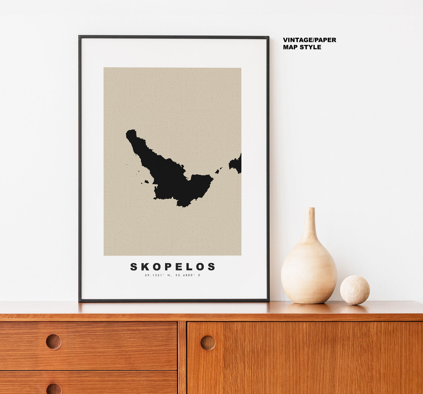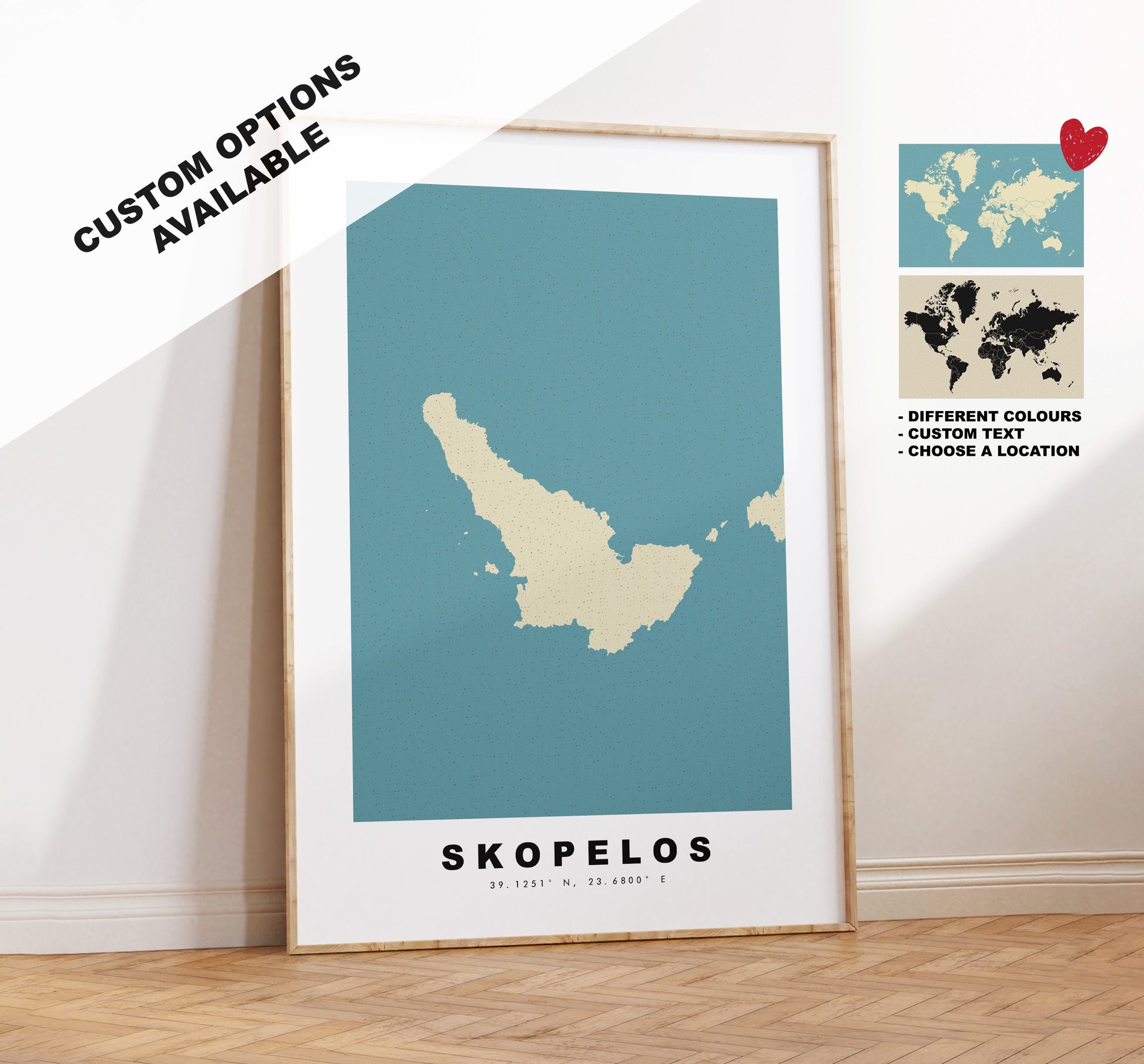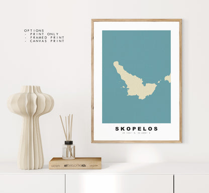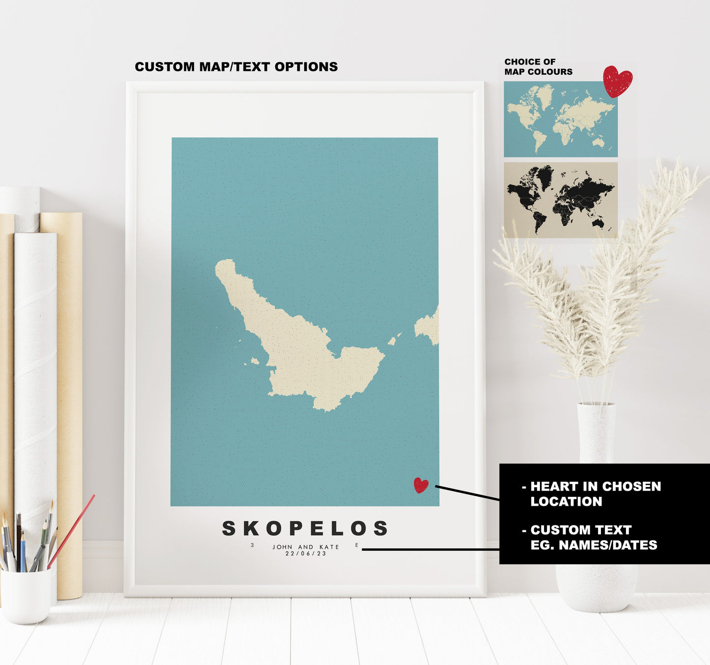 Skopelos Map Print - Personalised Map Gift - Framed or Canvas Options Available - Custom Text Options - Personalised Gift - Greece & Islands