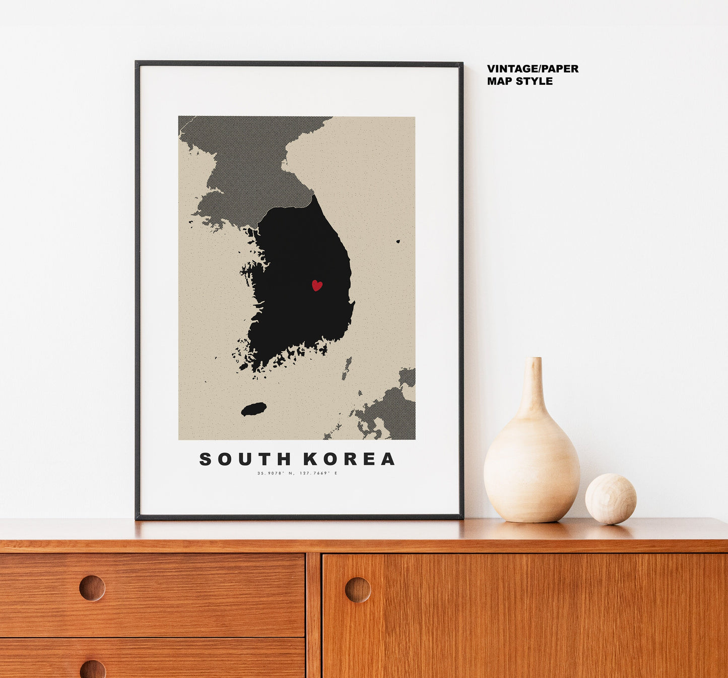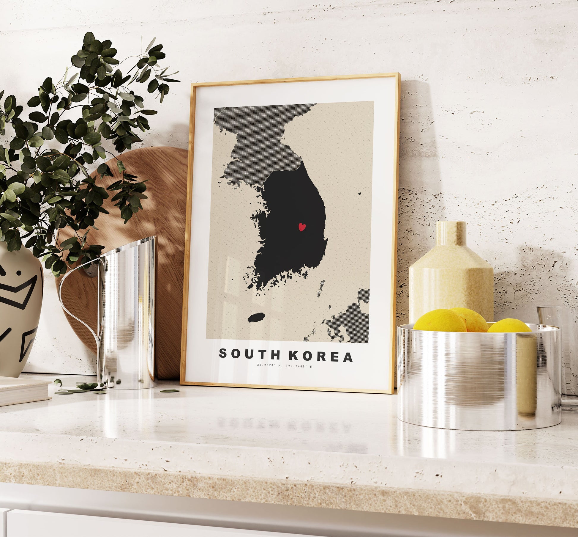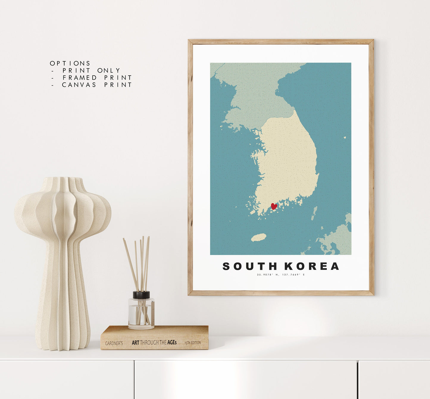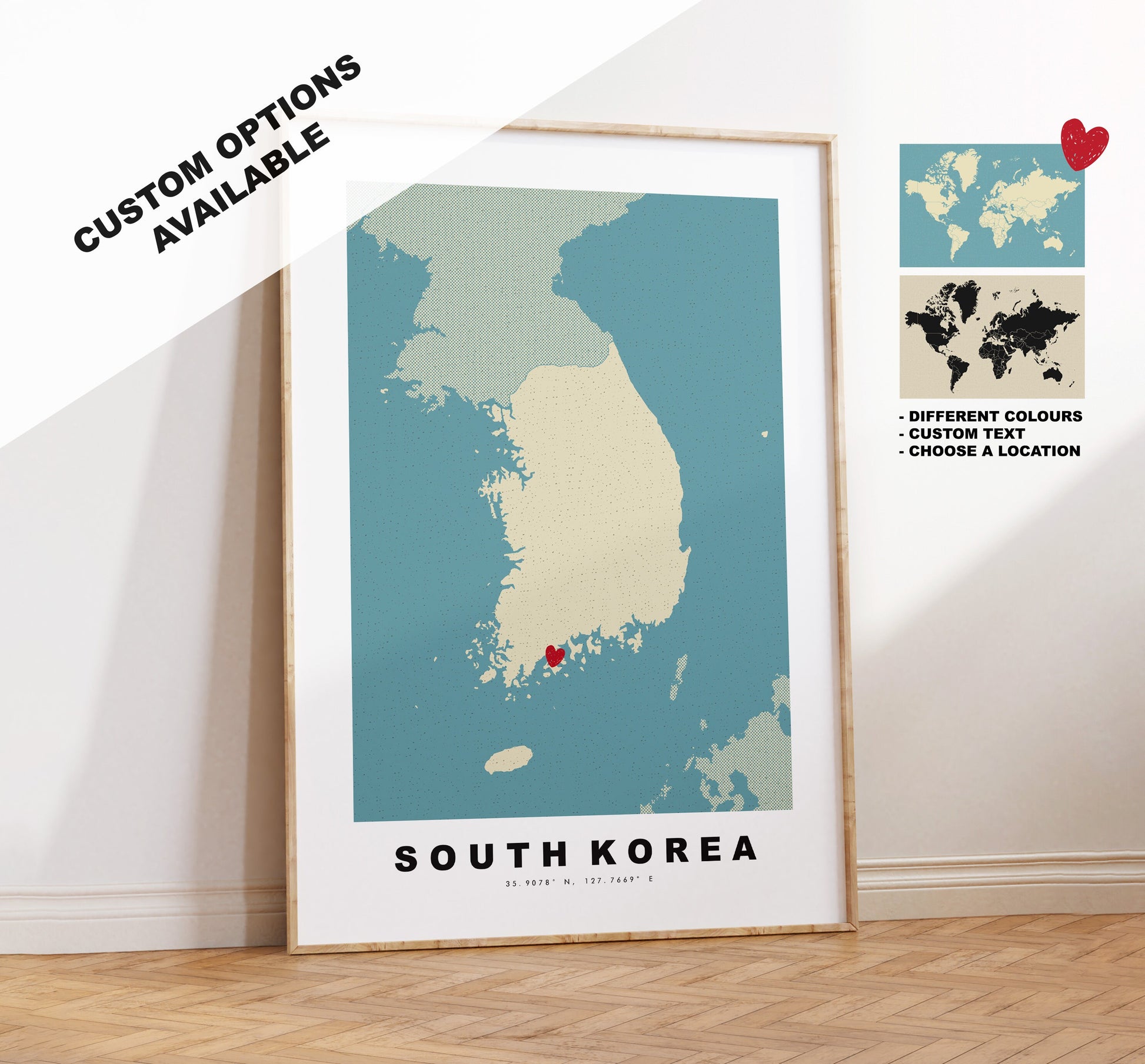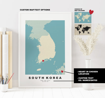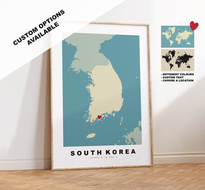 South Korea Map Print - Personalised Map Gift - Framed or Canvas Options Available - Custom Text Options - Personalised Gift - Asia