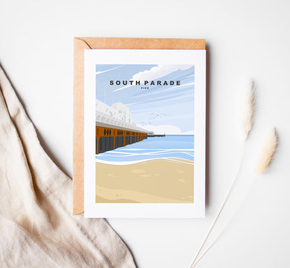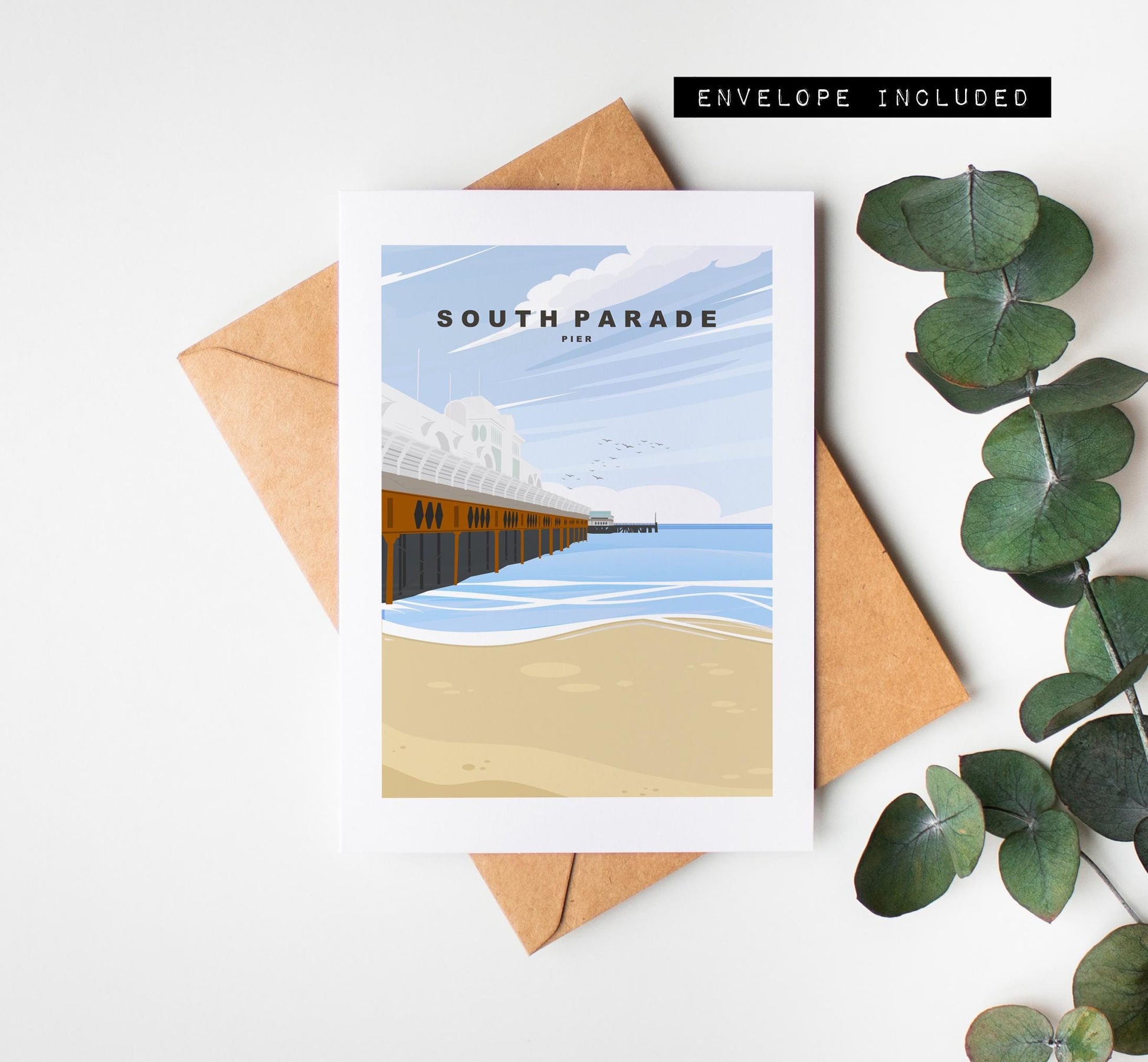 South Parade Pier Greeting Card - All of our cards are printed on 300gsm white recycled card stock and supplied with a recycled kraft envelope. Available blank inside or with an included message if you would like to send the card straight to the recipient!