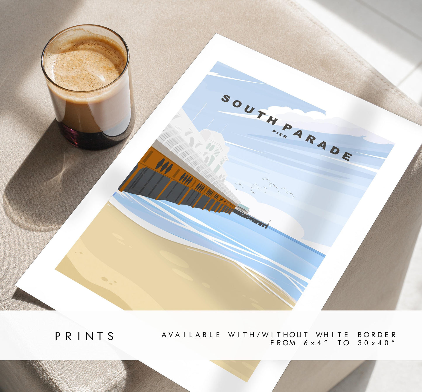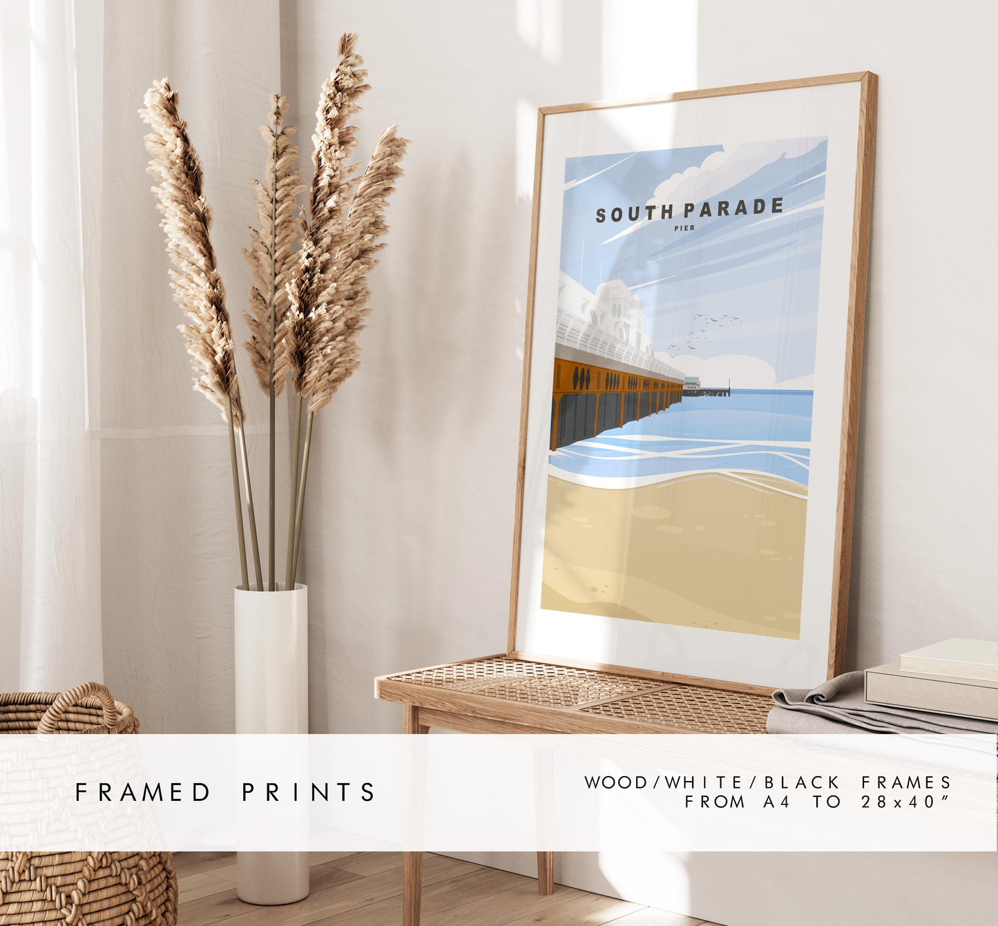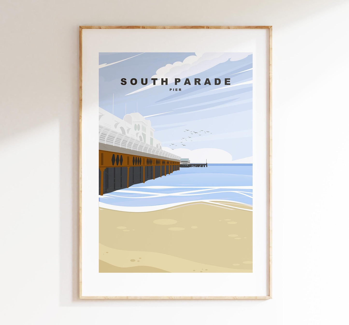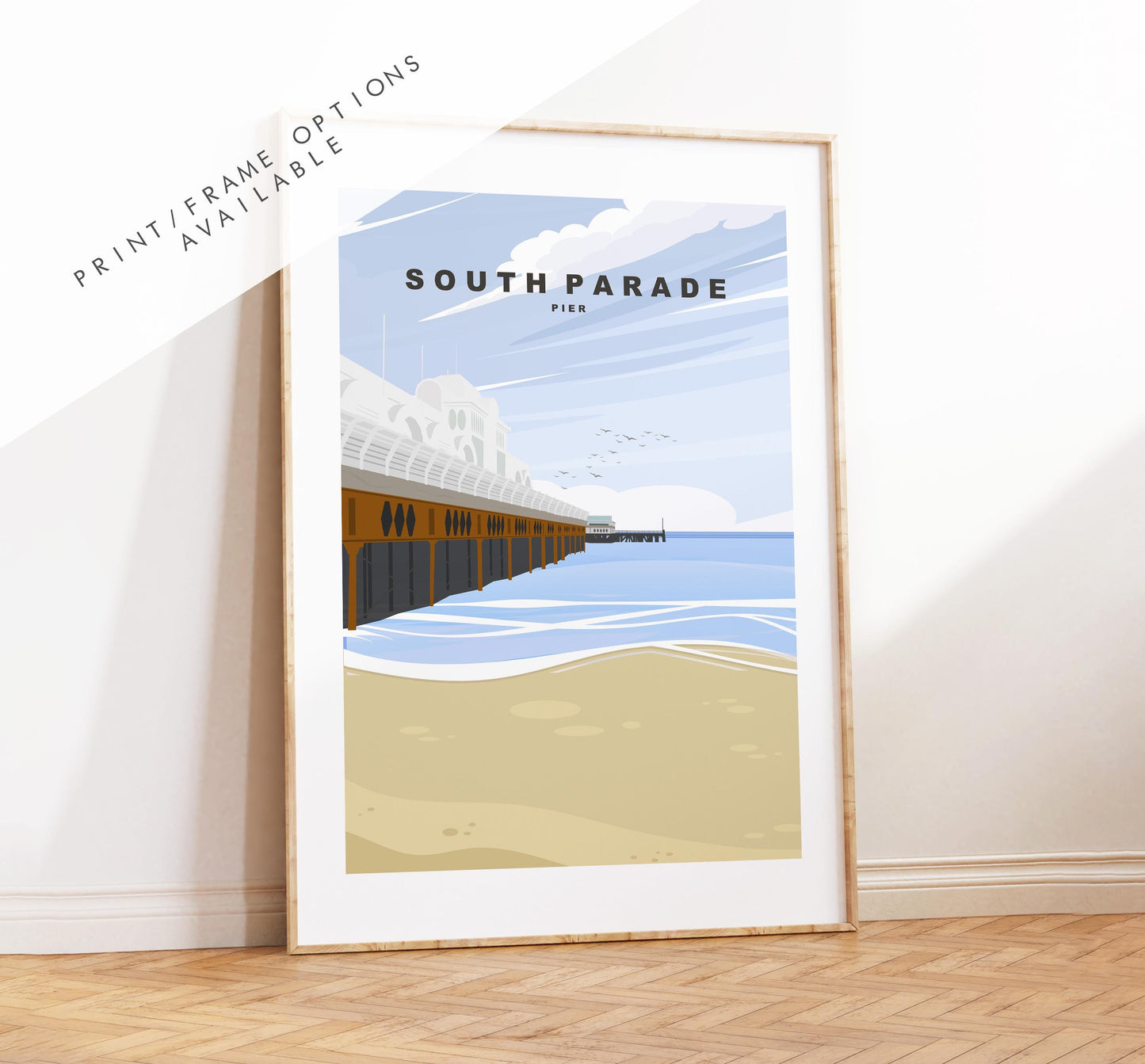 South Parade Pier Travel Poster - Featuring an original illustration by us and inspired by retro travel posters these prints make for a great addition to any home and perfect reminder of your favourite places!